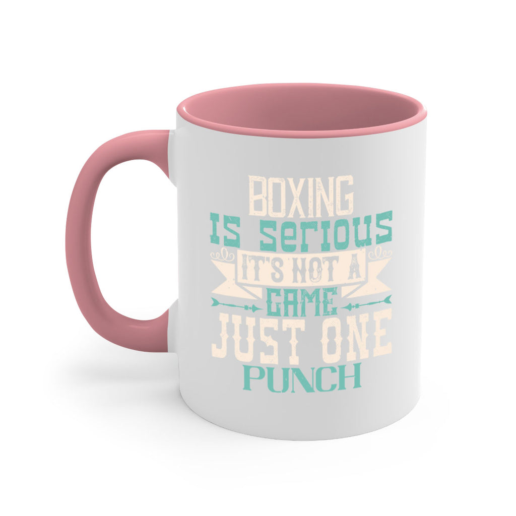 Enjoy the Boxing is serious Its not a game Just one punch 1556# Mug . Here to bring big gulps of coffee, Tea or any beverage and style, these two-tone coffee mugs help people around the world start the day just right. Choose between 5 different color options and 2 sizes to best complement the design. Each mug comes with a colored handle, a colored interior, and a classy, glossy finish so that your mugs become an instant favorite.