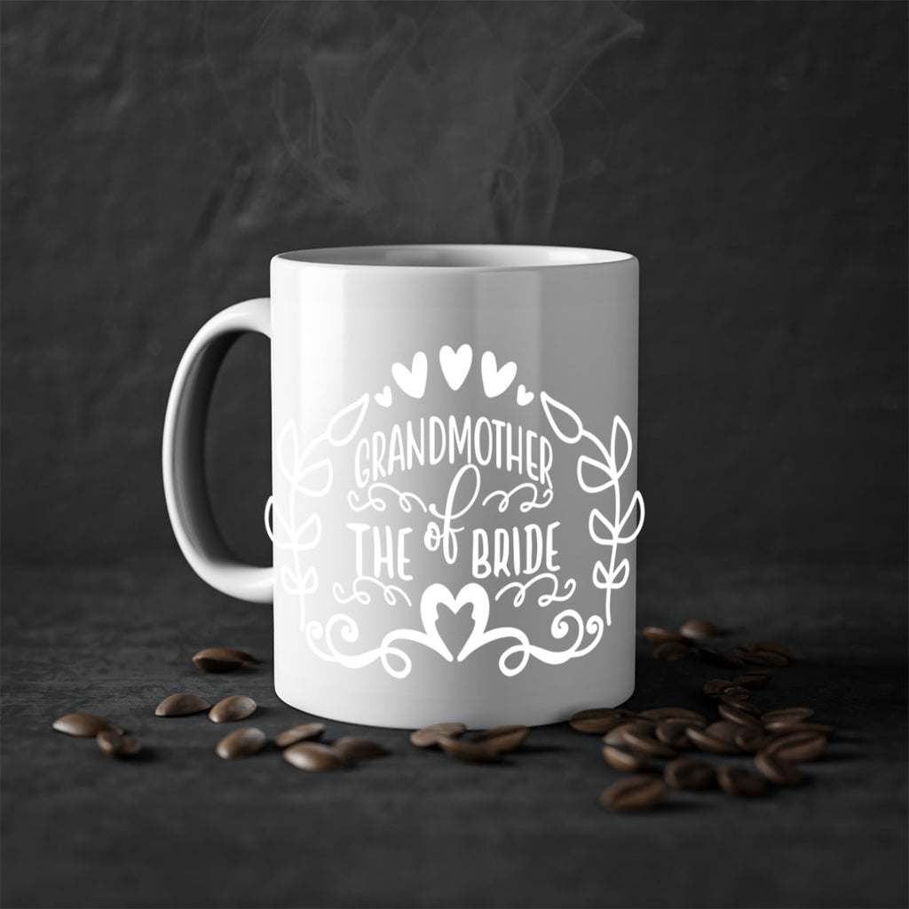 Enjoy the Grandma of the bride 33# Mug . Here to bring big gulps of coffee, Tea or any beverage and style, these two-tone coffee mugs help people around the world start the day just right. Choose between 5 different color options and 2 sizes to best complement the design. Each mug comes with a colored handle, a colored interior, and a classy, glossy finish so that your mugs become an instant favorite.