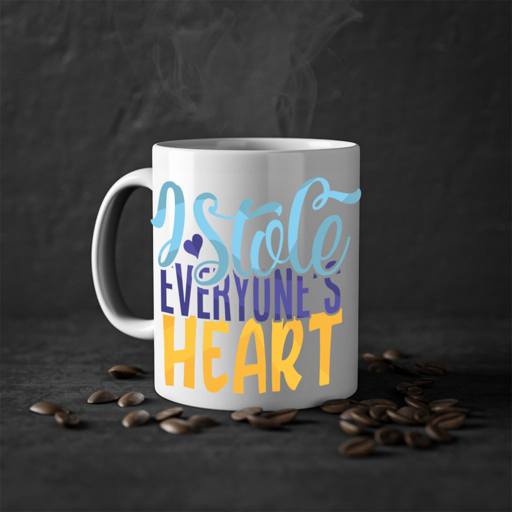Enjoy the I Stole Everyones Heart Style 247# Mug . Here to bring big gulps of coffee, Tea or any beverage and style, these two-tone coffee mugs help people around the world start the day just right. Choose between 5 different color options and 2 sizes to best complement the design. Each mug comes with a colored handle, a colored interior, and a classy, glossy finish so that your mugs become an instant favorite.