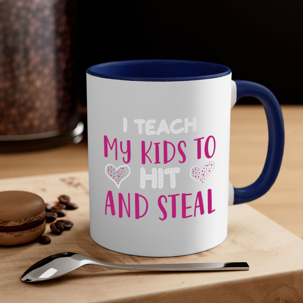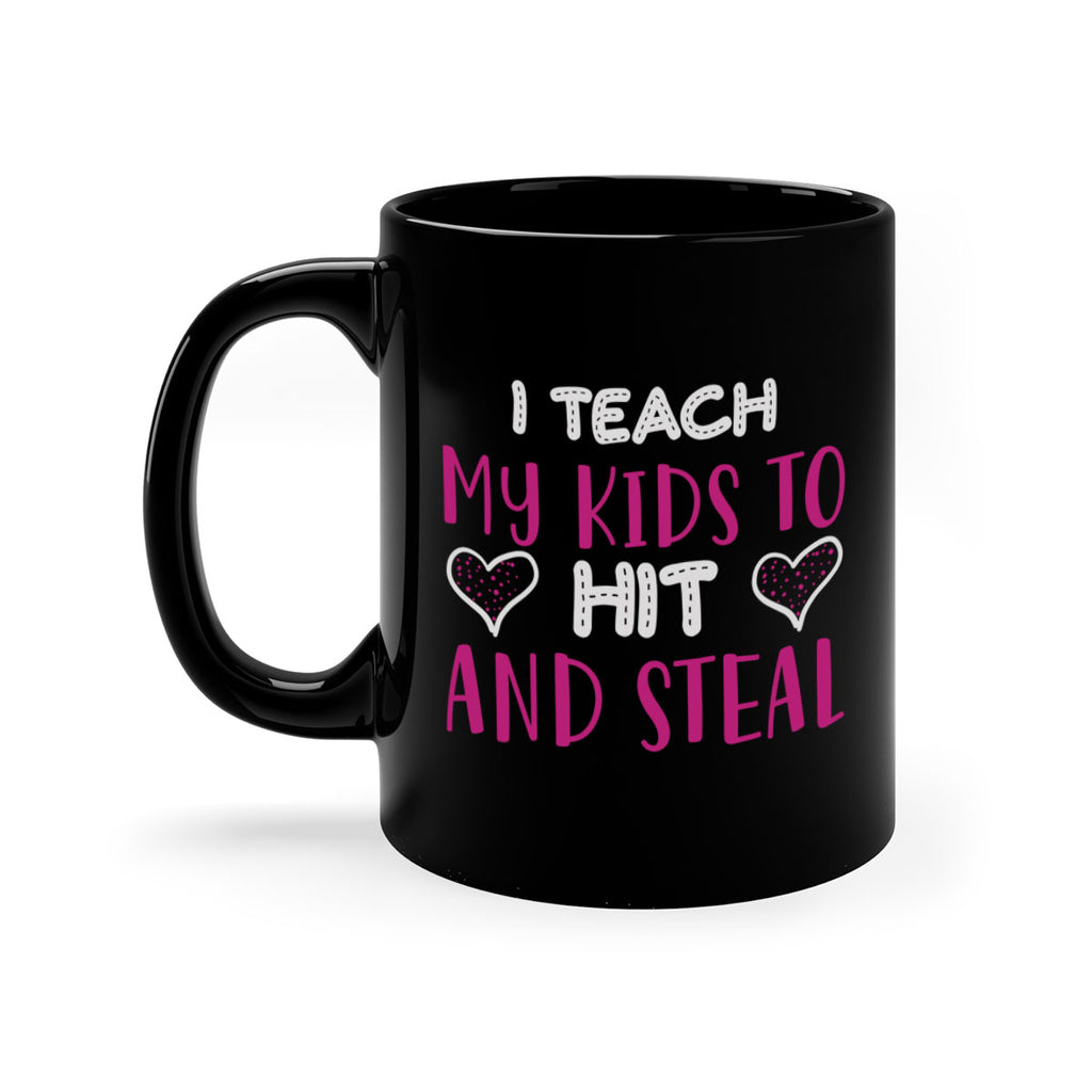 Enjoy the i teach my kids to hit and steal 152# Mug . Here to bring big gulps of coffee, Tea or any beverage and style, these two-tone coffee mugs help people around the world start the day just right. Choose between 5 different color options and 2 sizes to best complement the design. Each mug comes with a colored handle, a colored interior, and a classy, glossy finish so that your mugs become an instant favorite.