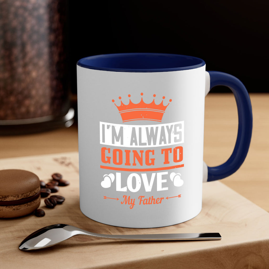 Enjoy the im always going to love my father 235# Mug . Here to bring big gulps of coffee, Tea or any beverage and style, these two-tone coffee mugs help people around the world start the day just right. Choose between 5 different color options and 2 sizes to best complement the design. Each mug comes with a colored handle, a colored interior, and a classy, glossy finish so that your mugs become an instant favorite.