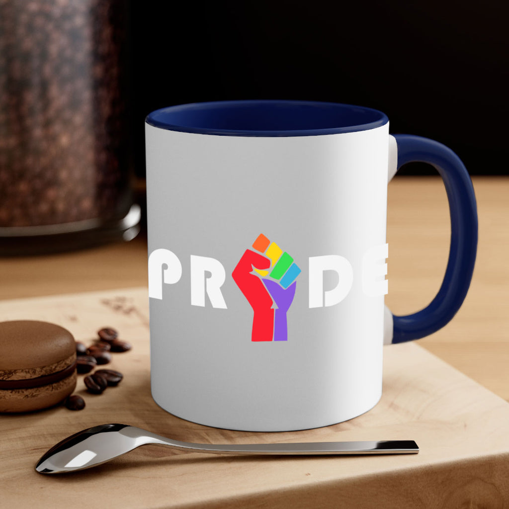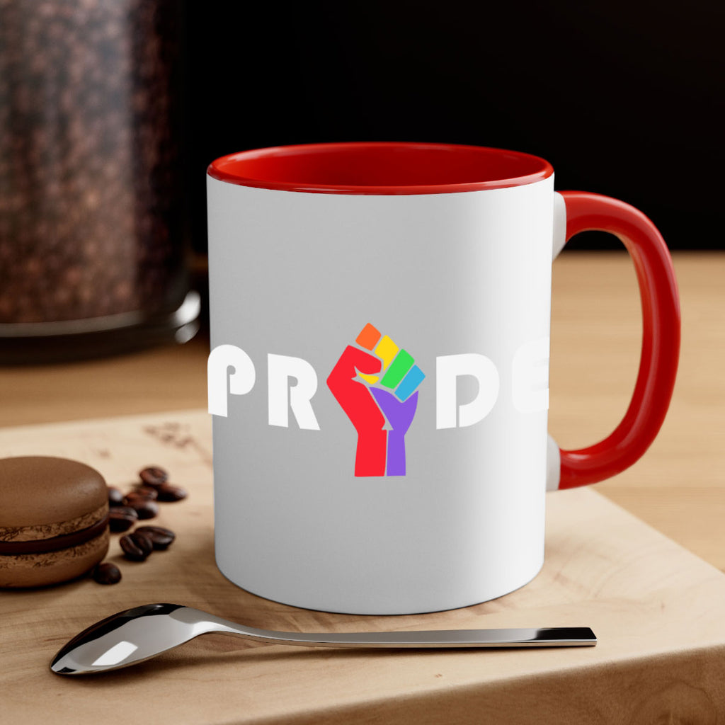 Enjoy the pride fist lgbt 44# Mug . Here to bring big gulps of coffee, Tea or any beverage and style, these two-tone coffee mugs help people around the world start the day just right. Choose between 5 different color options and 2 sizes to best complement the design. Each mug comes with a colored handle, a colored interior, and a classy, glossy finish so that your mugs become an instant favorite.