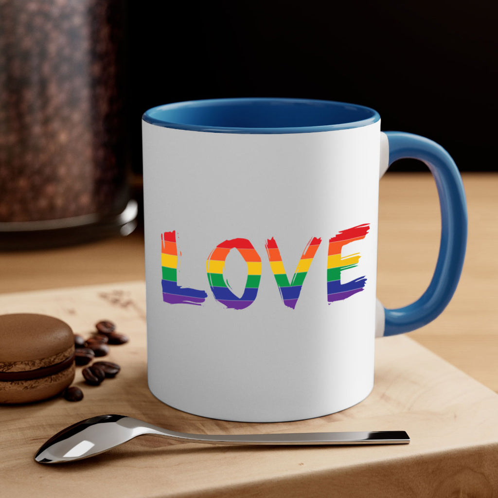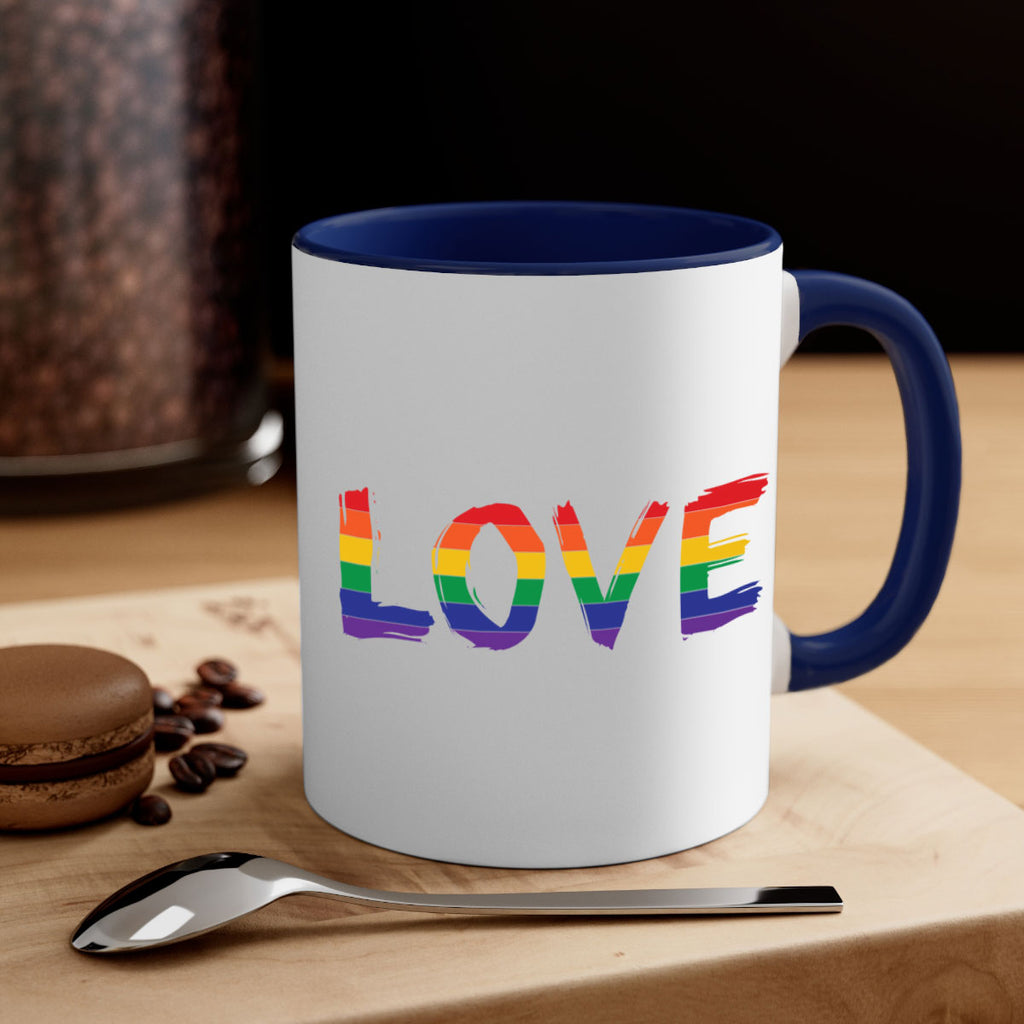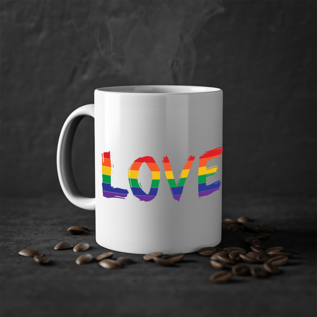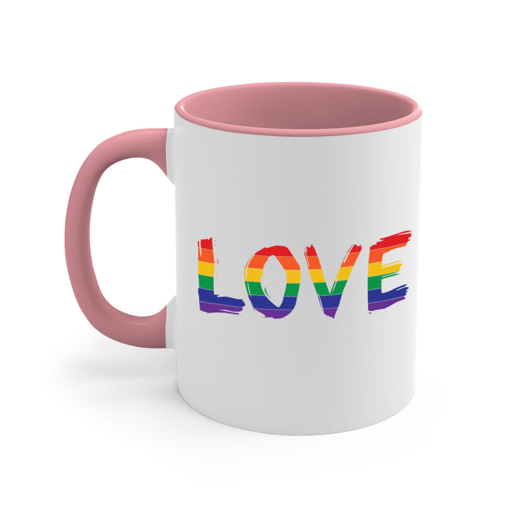 Enjoy the pride love 58# Mug . Here to bring big gulps of coffee, Tea or any beverage and style, these two-tone coffee mugs help people around the world start the day just right. Choose between 5 different color options and 2 sizes to best complement the design. Each mug comes with a colored handle, a colored interior, and a classy, glossy finish so that your mugs become an instant favorite.