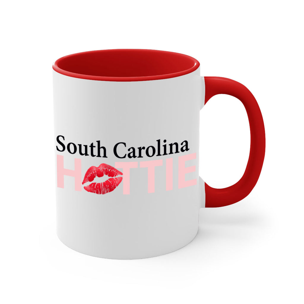 Enjoy the South Carolina Hottie With Red Lips 40# Mug . Here to bring big gulps of coffee, Tea or any beverage and style, these two-tone coffee mugs help people around the world start the day just right. Choose between 5 different color options and 2 sizes to best complement the design. Each mug comes with a colored handle, a colored interior, and a classy, glossy finish so that your mugs become an instant favorite.