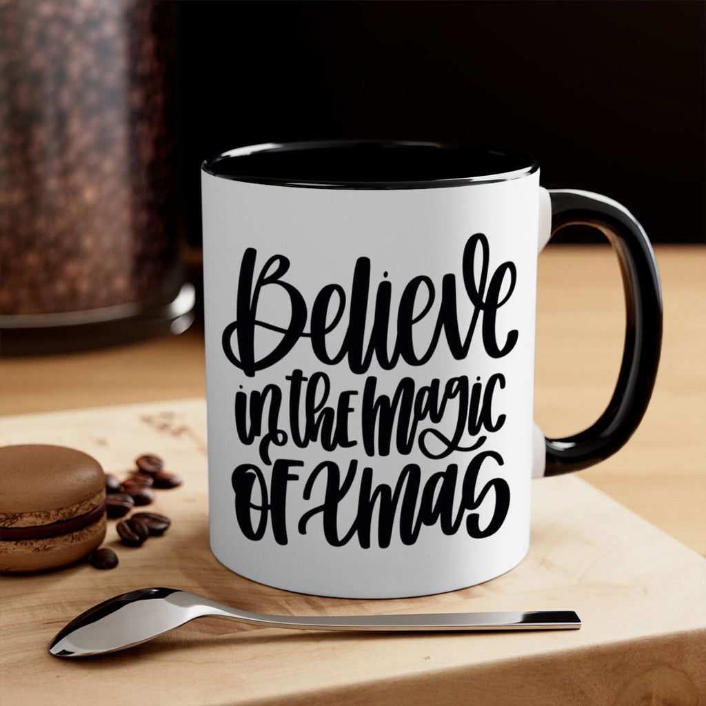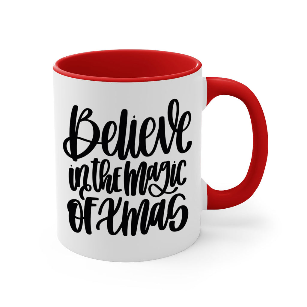 Enjoy the believe in the magic of xmas 206# Mug . Here to bring big gulps of coffee, Tea or any beverage and style, these two-tone coffee mugs help people around the world start the day just right. Choose between 5 different color options and 2 sizes to best complement the design. Each mug comes with a colored handle, a colored interior, and a classy, glossy finish so that your mugs become an instant favorite.