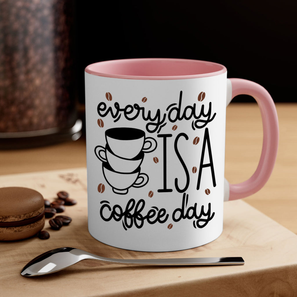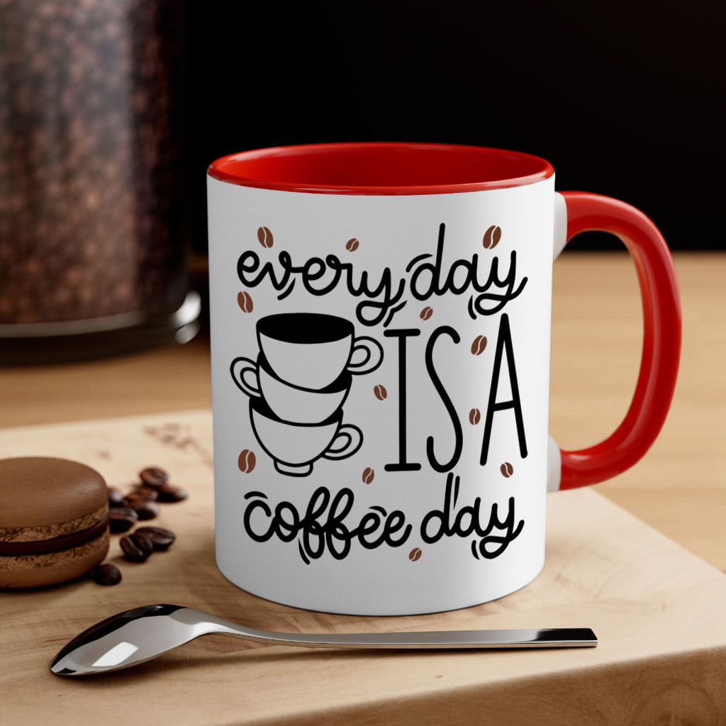 Enjoy the everyday is a coffee day 125# Mug . Here to bring big gulps of coffee, Tea or any beverage and style, these two-tone coffee mugs help people around the world start the day just right. Choose between 5 different color options and 2 sizes to best complement the design. Each mug comes with a colored handle, a colored interior, and a classy, glossy finish so that your mugs become an instant favorite.