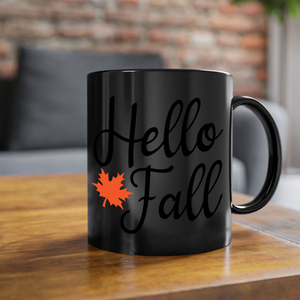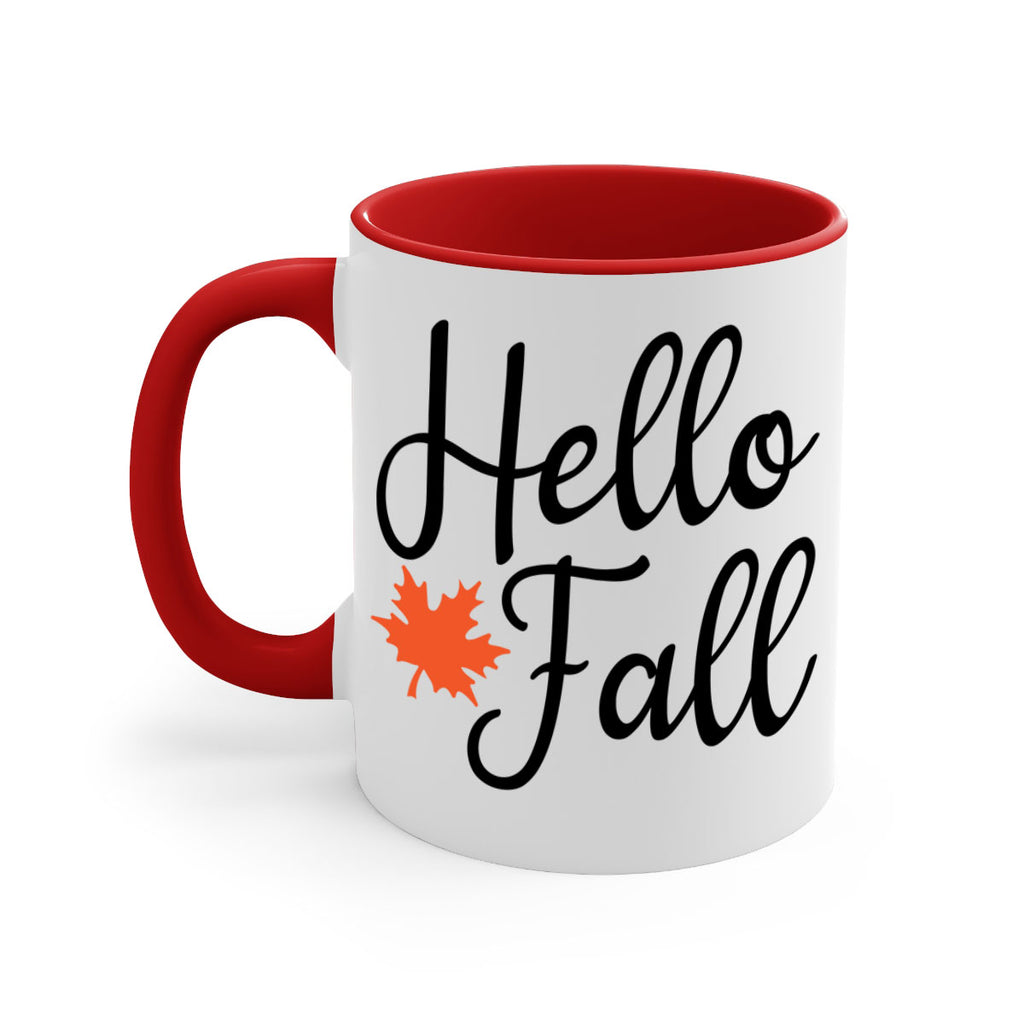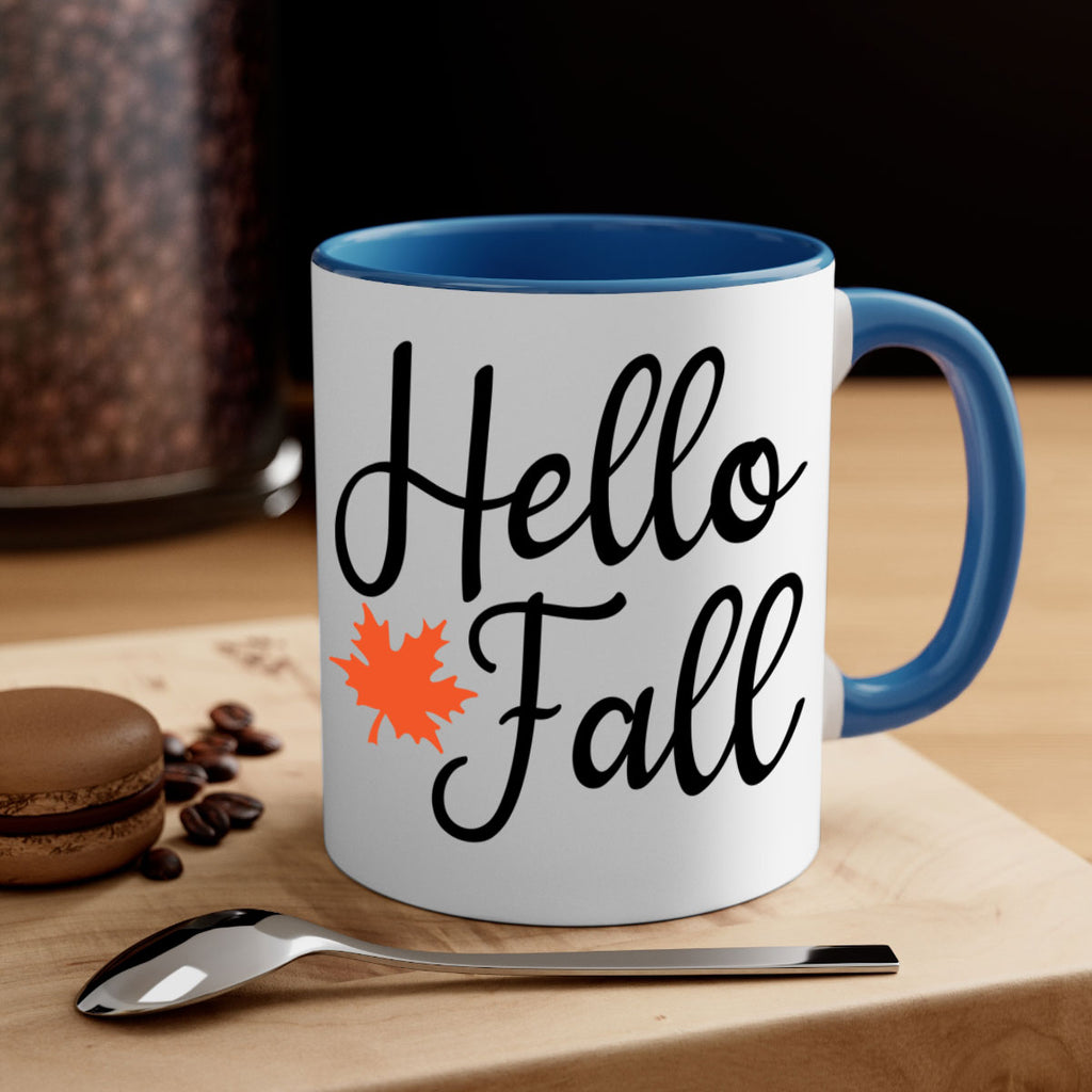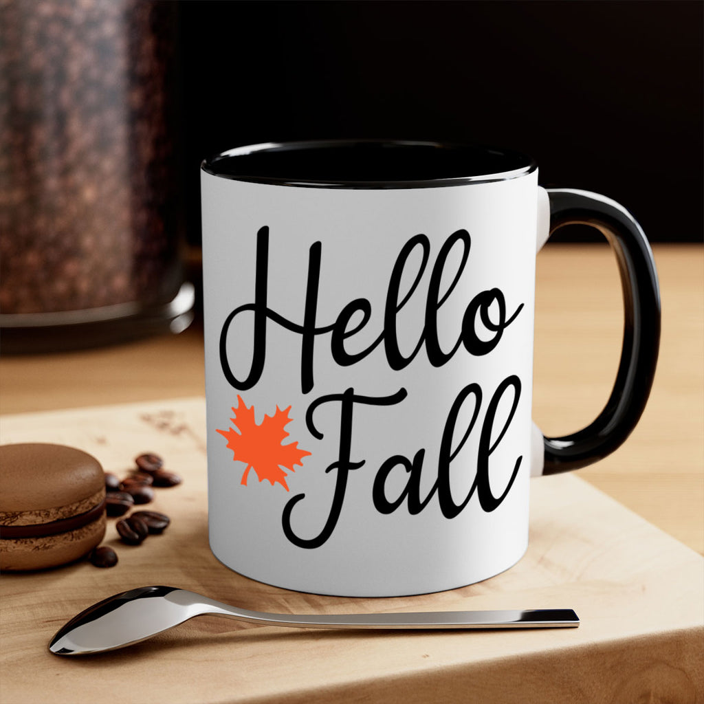 Enjoy the Hello Fall 274# Mug . Here to bring big gulps of coffee, Tea or any beverage and style, these two-tone coffee mugs help people around the world start the day just right. Choose between 5 different color options and 2 sizes to best complement the design. Each mug comes with a colored handle, a colored interior, and a classy, glossy finish so that your mugs become an instant favorite.