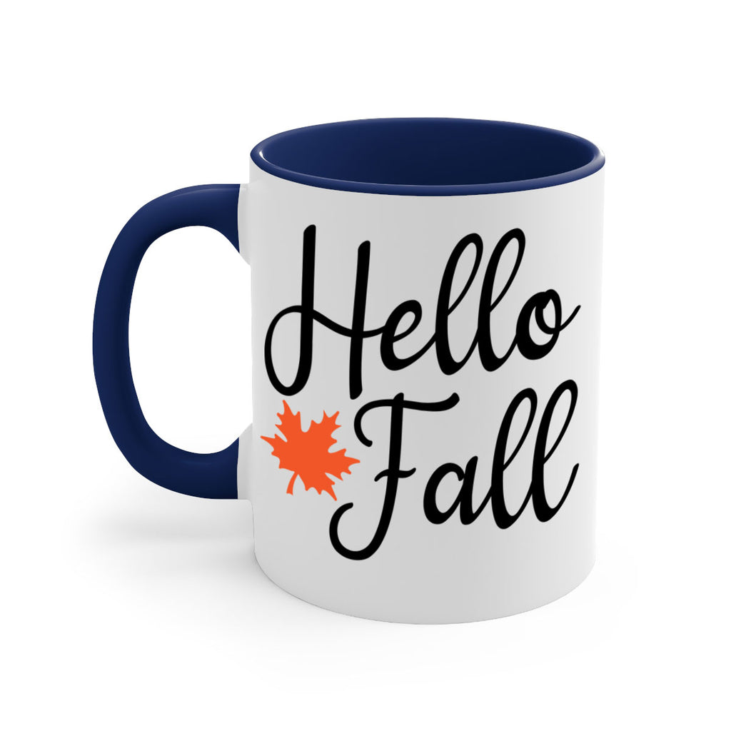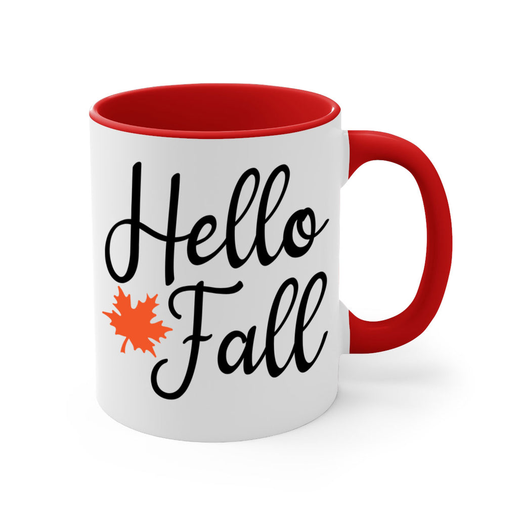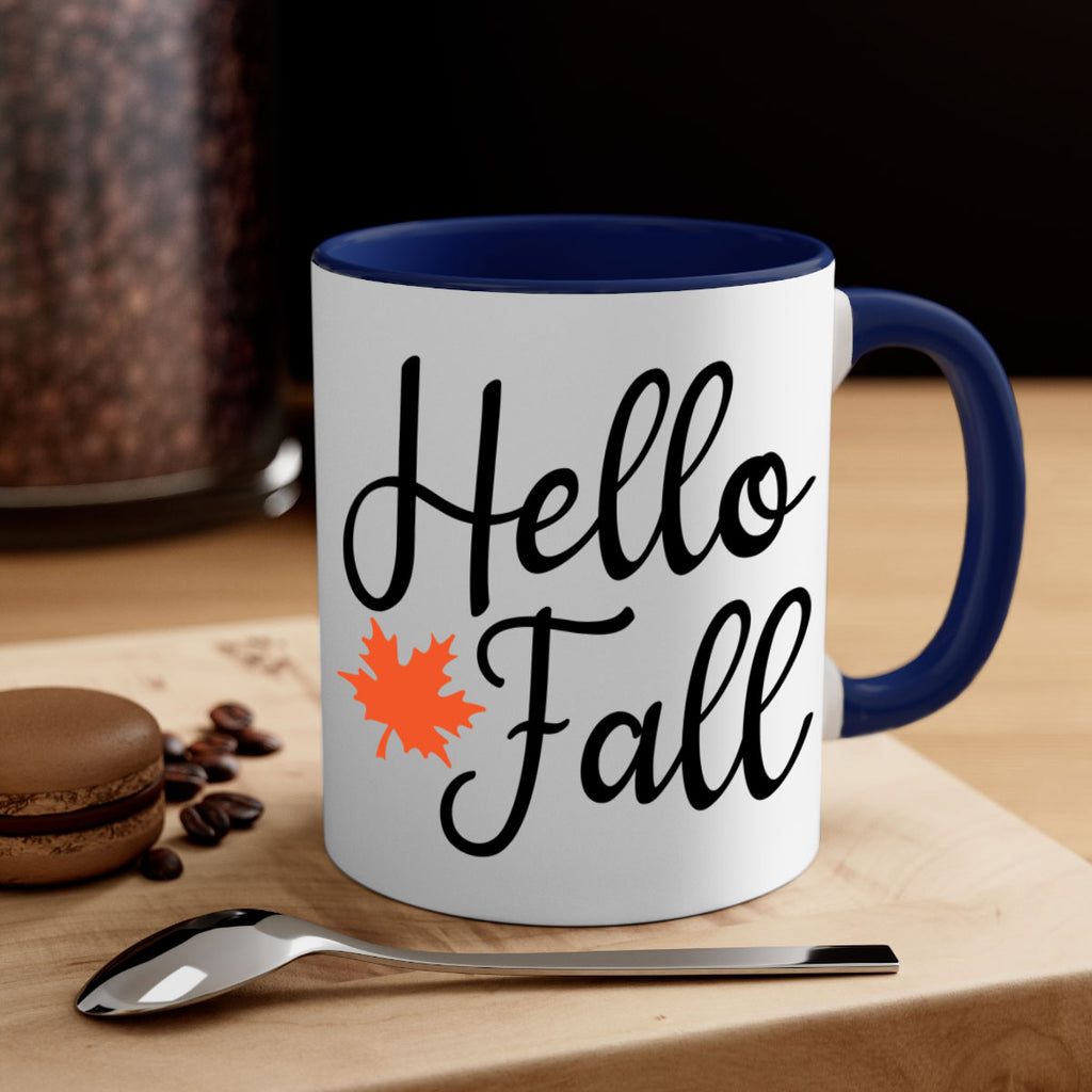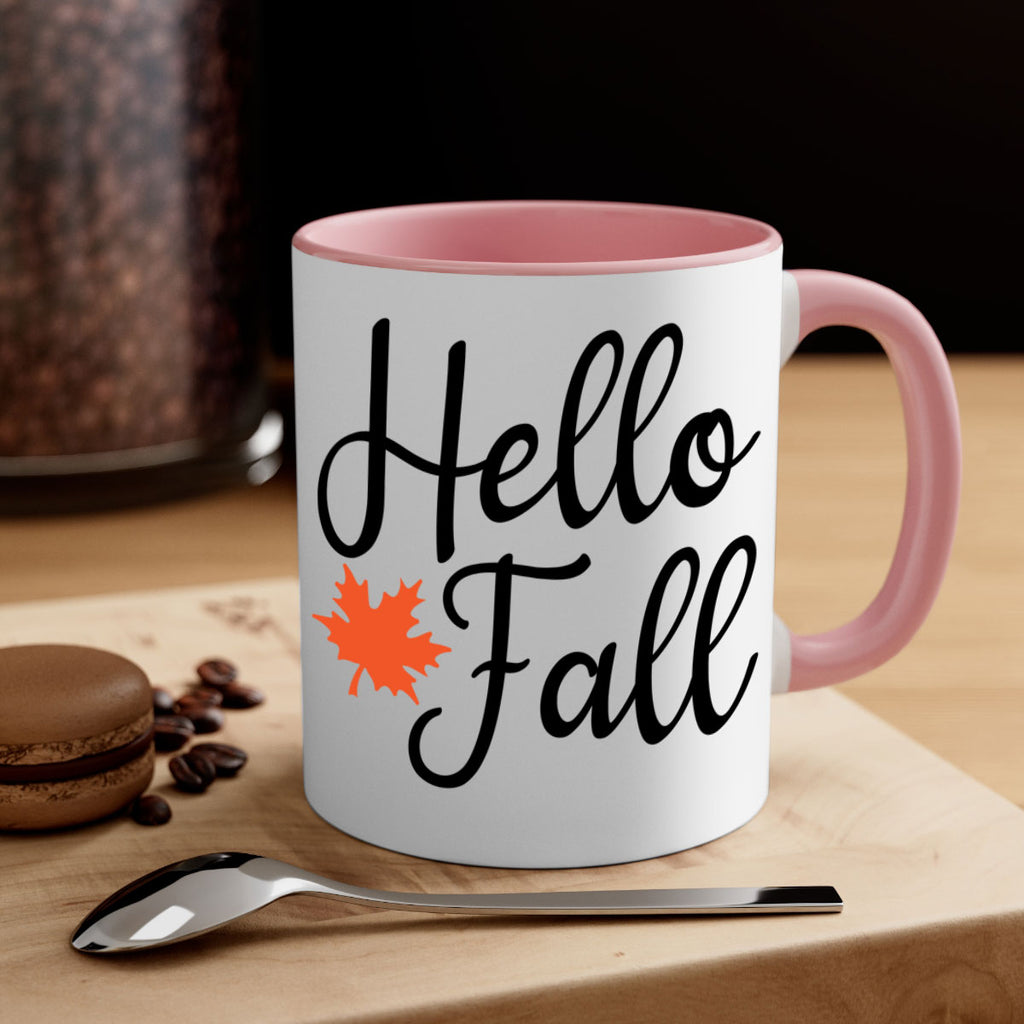 Enjoy the Hello Fall 274# Mug . Here to bring big gulps of coffee, Tea or any beverage and style, these two-tone coffee mugs help people around the world start the day just right. Choose between 5 different color options and 2 sizes to best complement the design. Each mug comes with a colored handle, a colored interior, and a classy, glossy finish so that your mugs become an instant favorite.