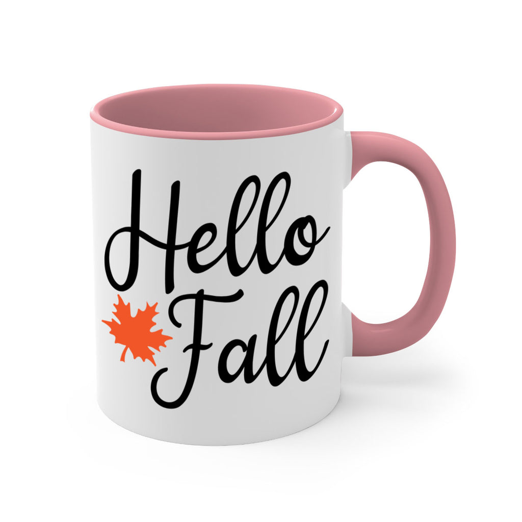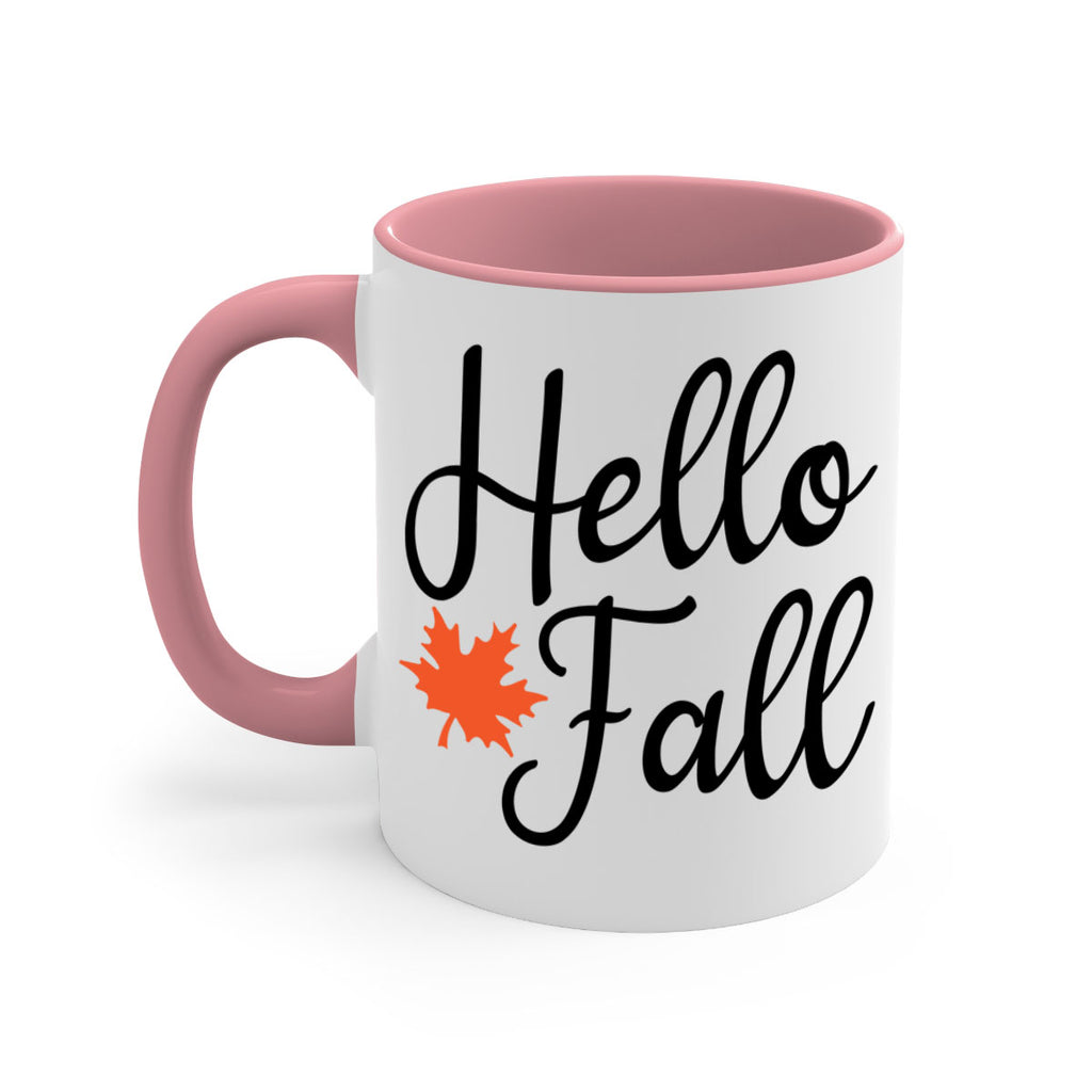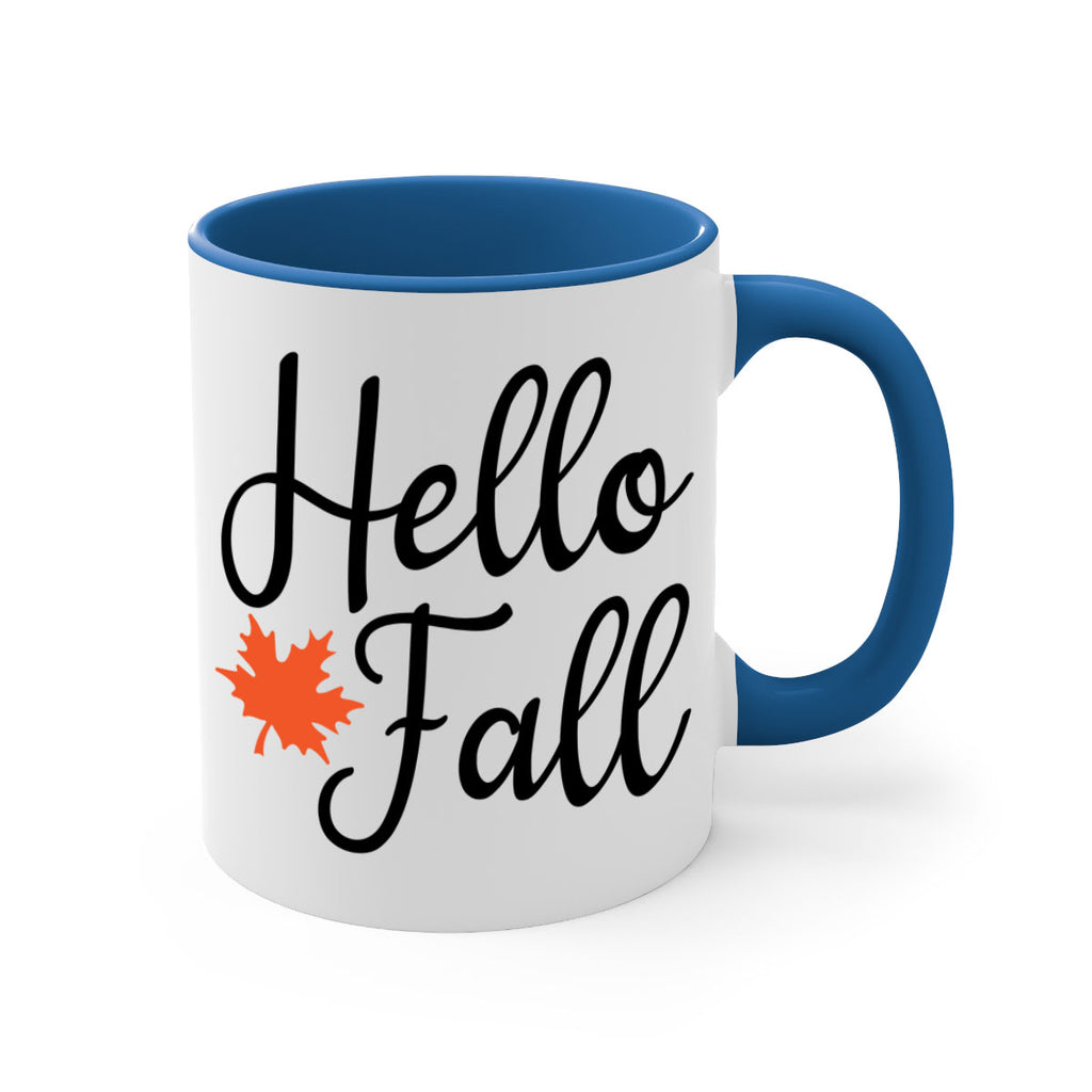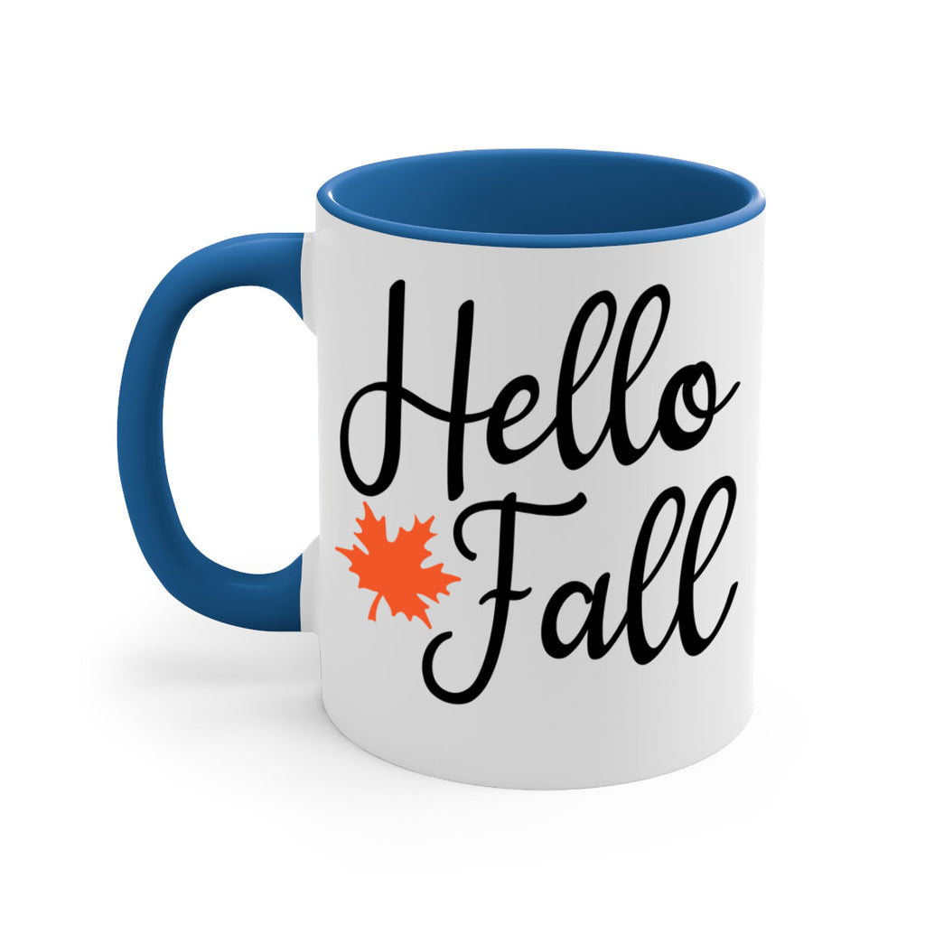 Enjoy the Hello Fall 274# Mug . Here to bring big gulps of coffee, Tea or any beverage and style, these two-tone coffee mugs help people around the world start the day just right. Choose between 5 different color options and 2 sizes to best complement the design. Each mug comes with a colored handle, a colored interior, and a classy, glossy finish so that your mugs become an instant favorite.
