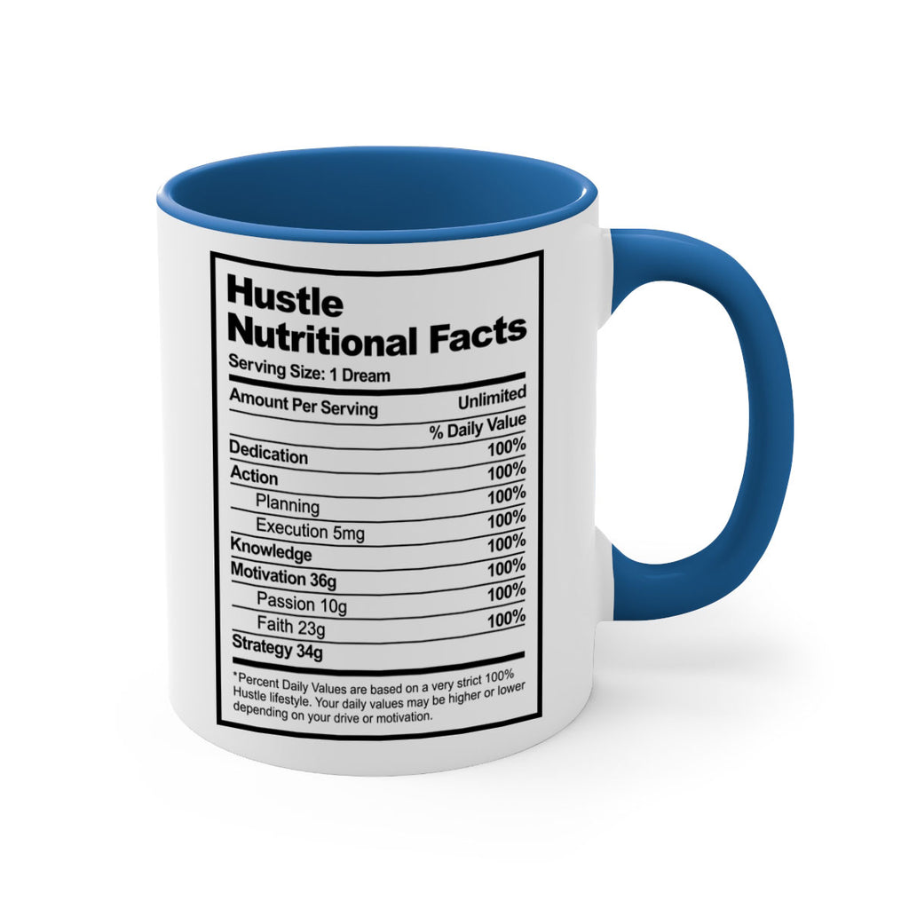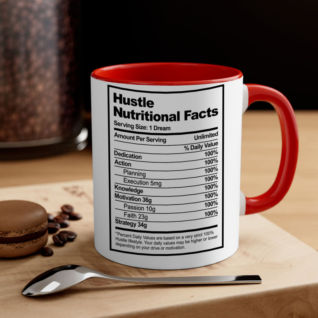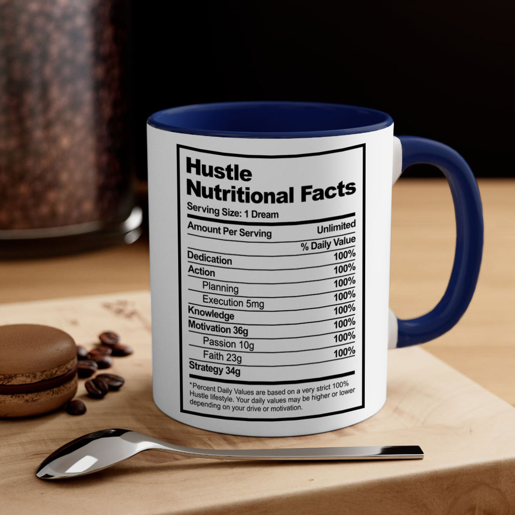 Enjoy the hustle nutritional facts 121# Mug . Here to bring big gulps of coffee, Tea or any beverage and style, these two-tone coffee mugs help people around the world start the day just right. Choose between 5 different color options and 2 sizes to best complement the design. Each mug comes with a colored handle, a colored interior, and a classy, glossy finish so that your mugs become an instant favorite.