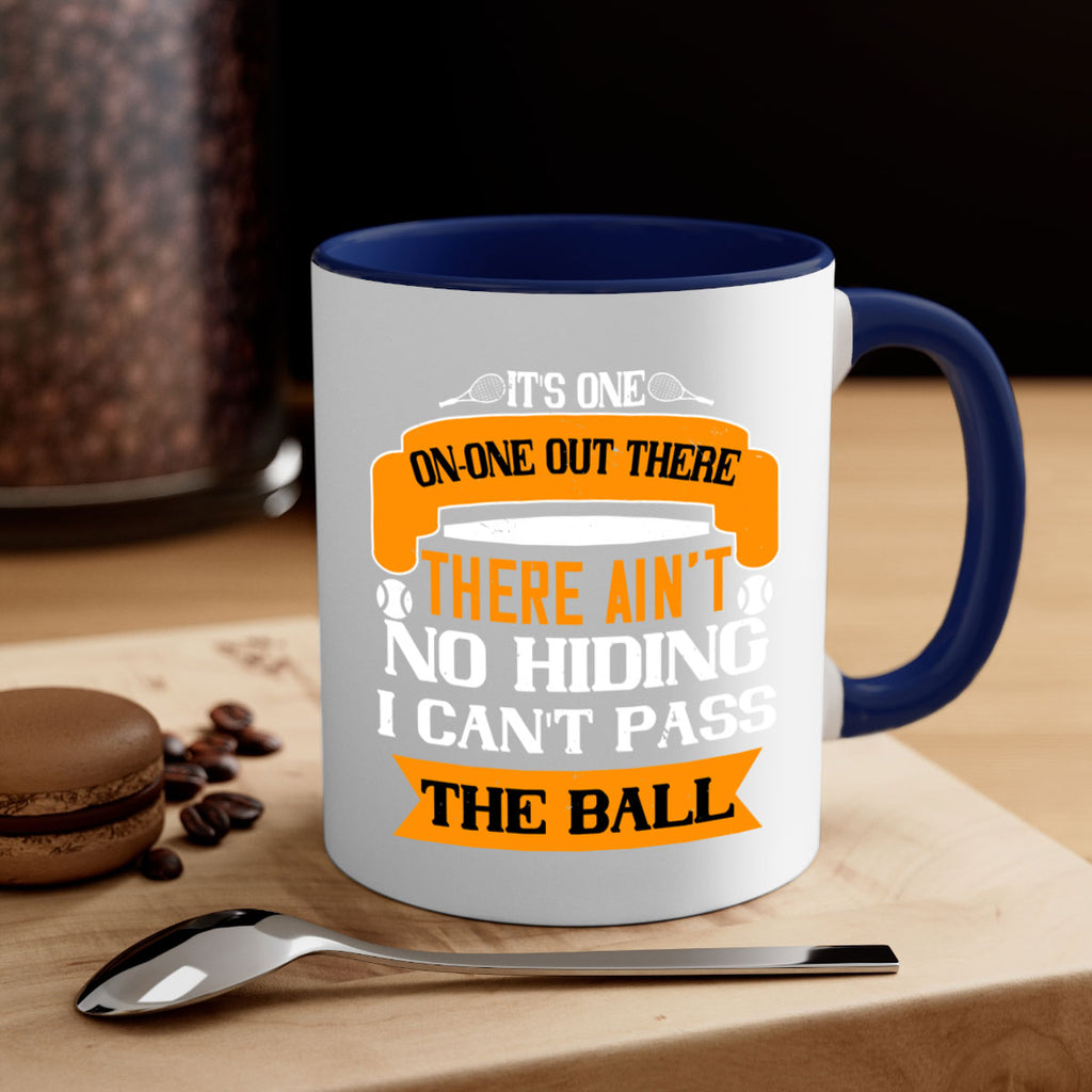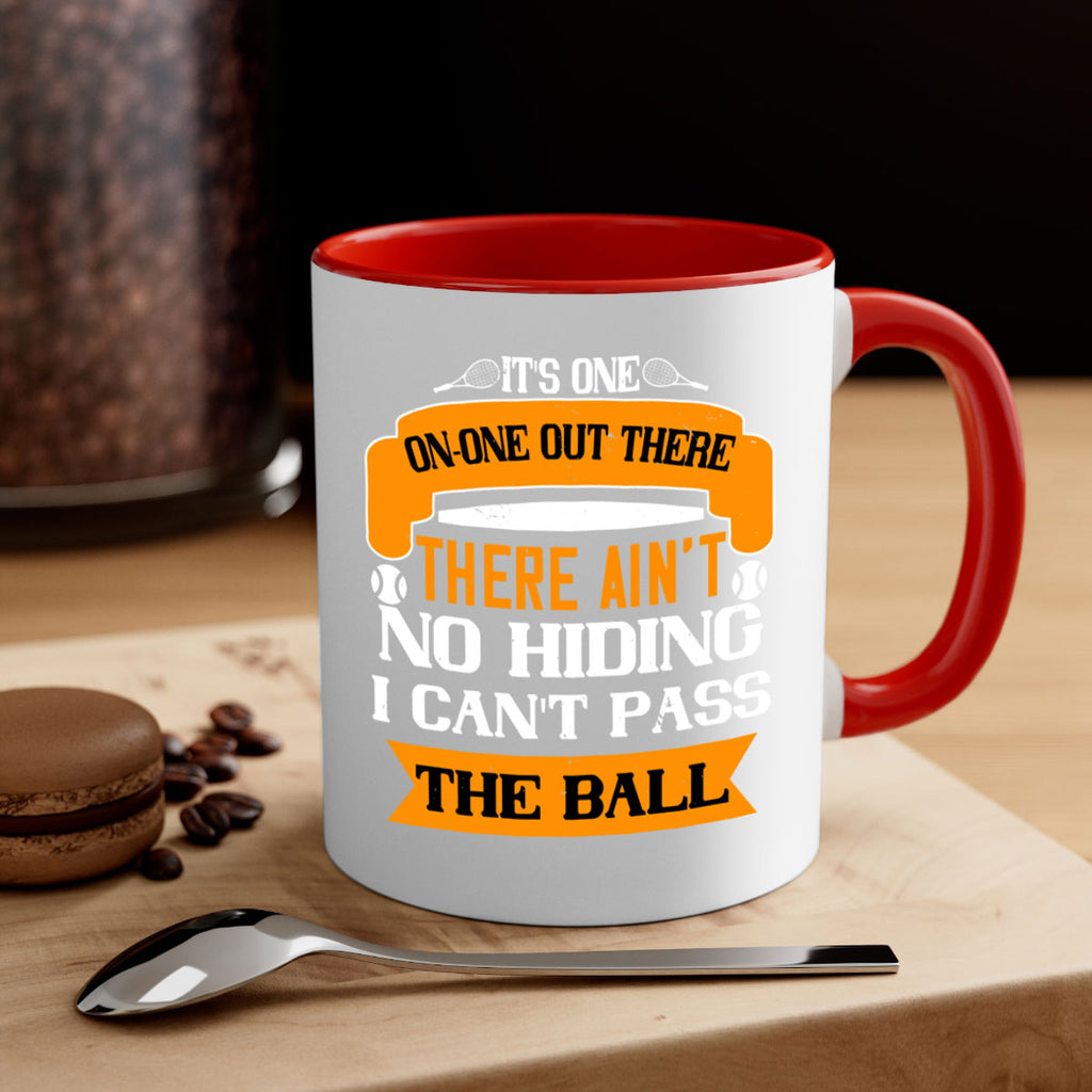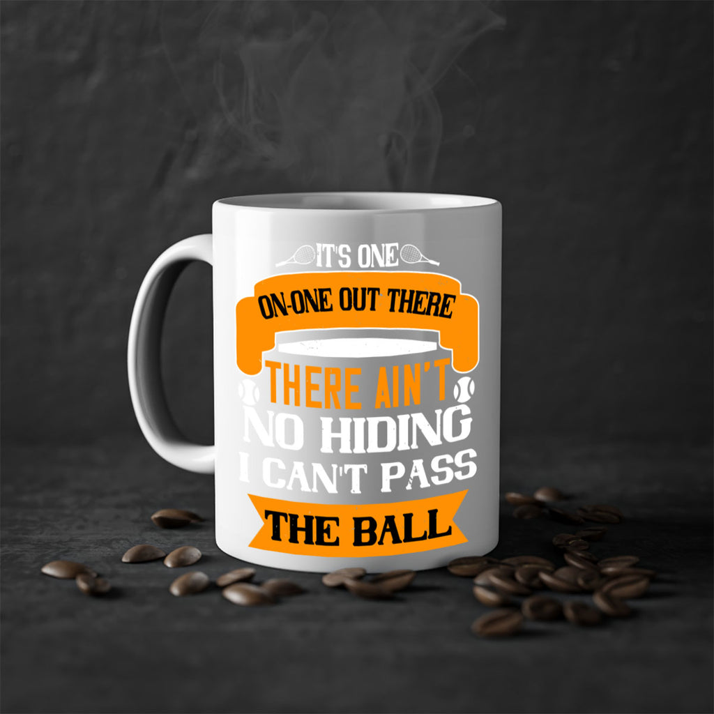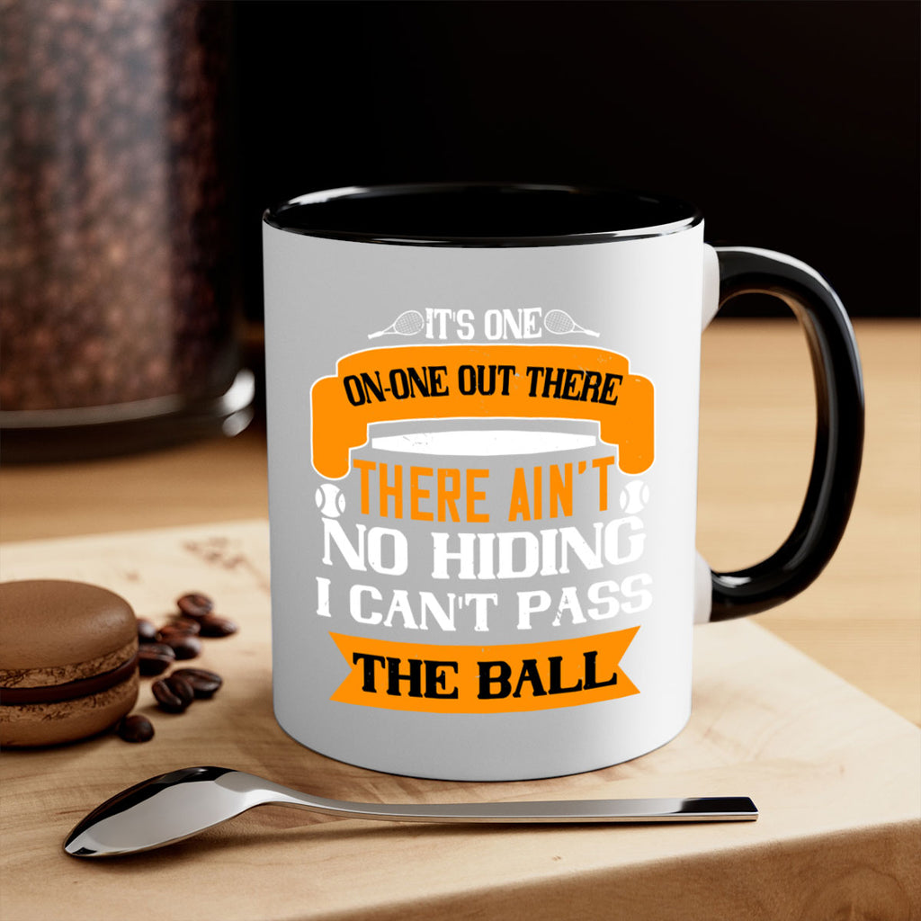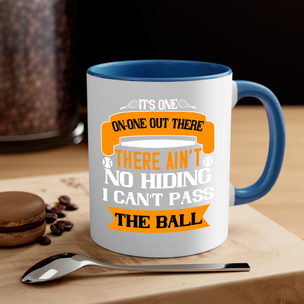 Enjoy the Its oneonone out there man There aint no hiding I cant pass the ball 989# Mug . Here to bring big gulps of coffee, Tea or any beverage and style, these two-tone coffee mugs help people around the world start the day just right. Choose between 5 different color options and 2 sizes to best complement the design. Each mug comes with a colored handle, a colored interior, and a classy, glossy finish so that your mugs become an instant favorite.
