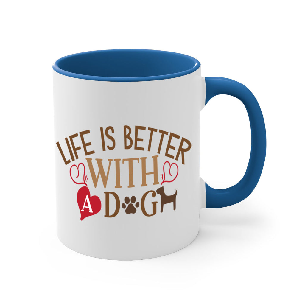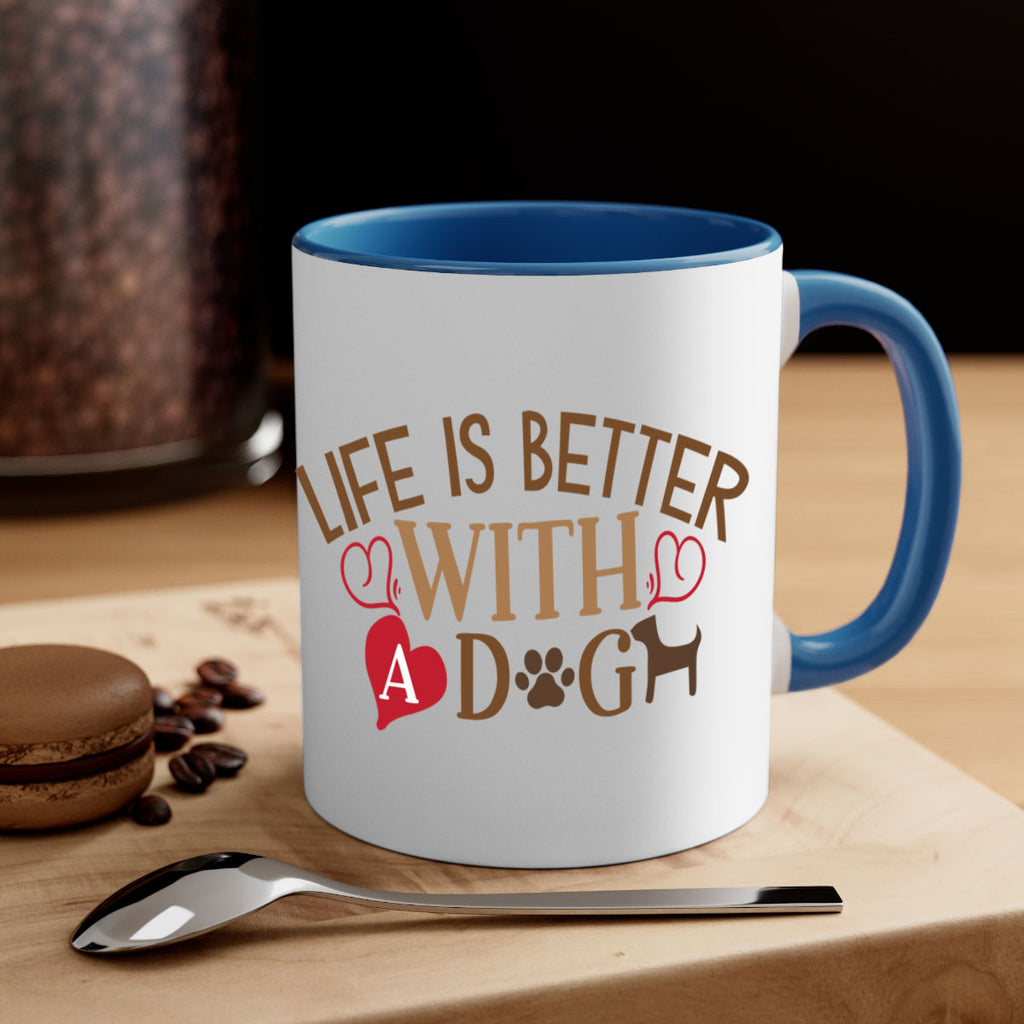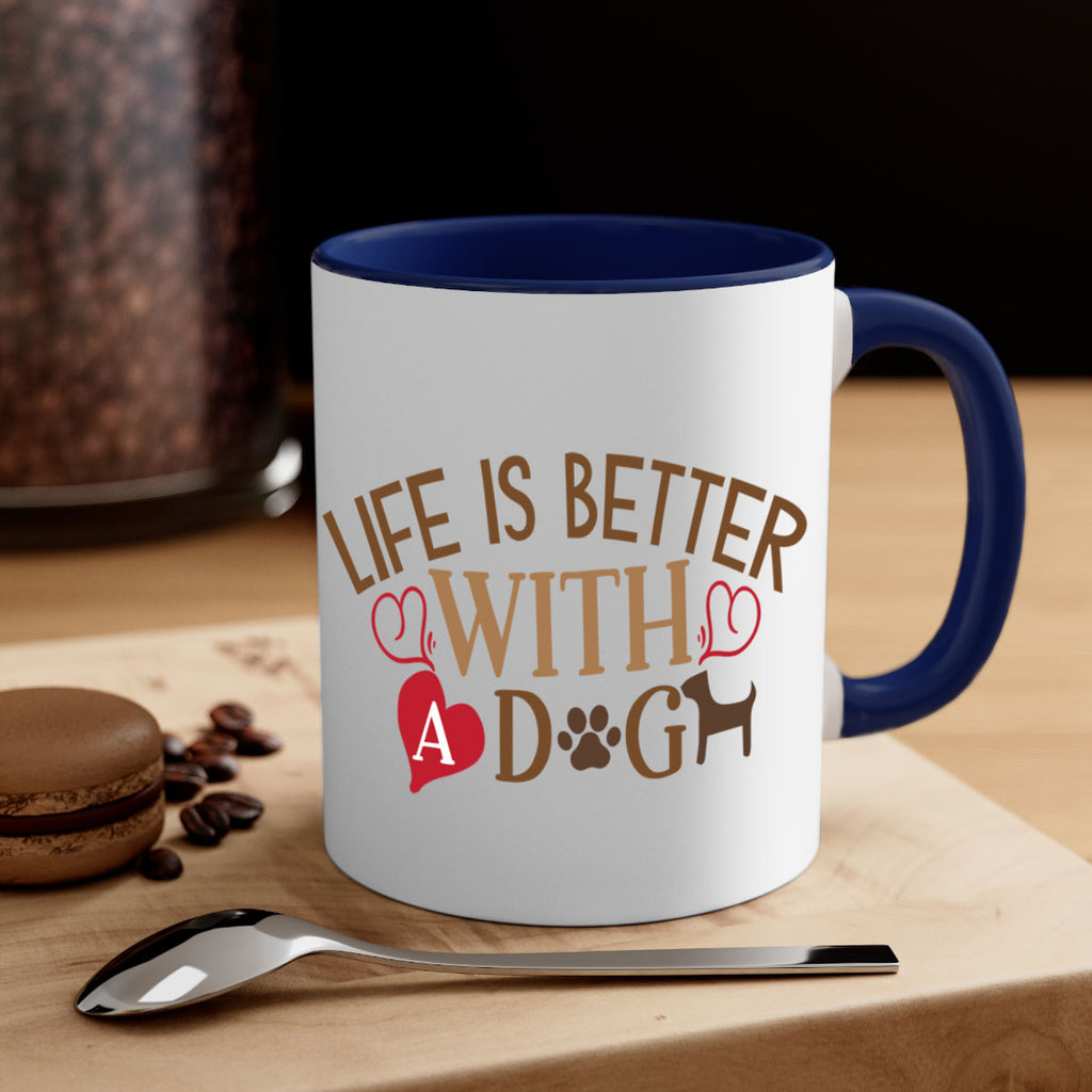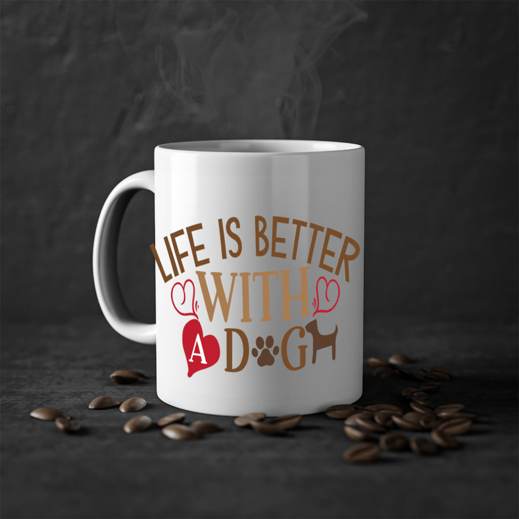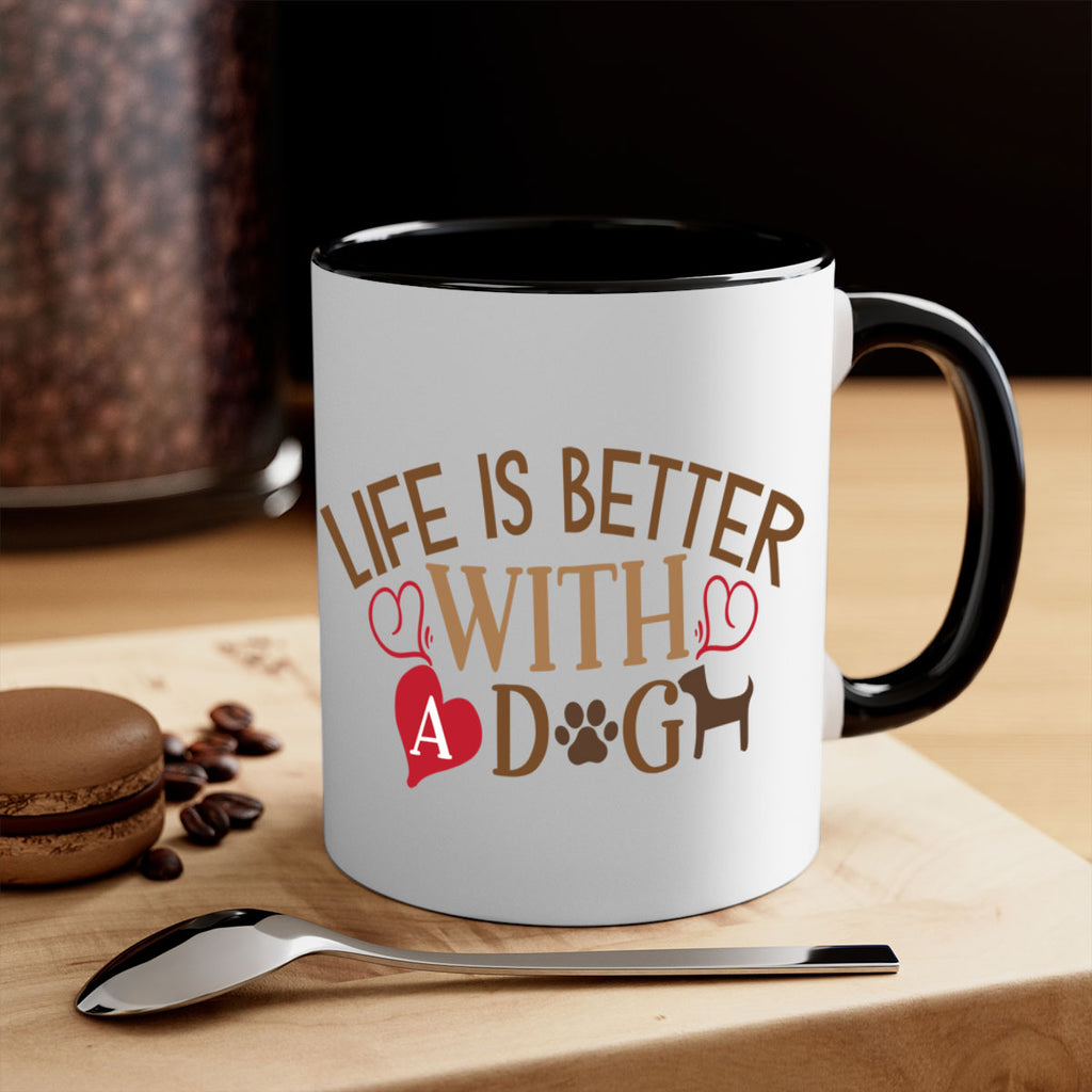 Enjoy the Life is Better With a Dog Style 77# Mug . Here to bring big gulps of coffee, Tea or any beverage and style, these two-tone coffee mugs help people around the world start the day just right. Choose between 5 different color options and 2 sizes to best complement the design. Each mug comes with a colored handle, a colored interior, and a classy, glossy finish so that your mugs become an instant favorite.