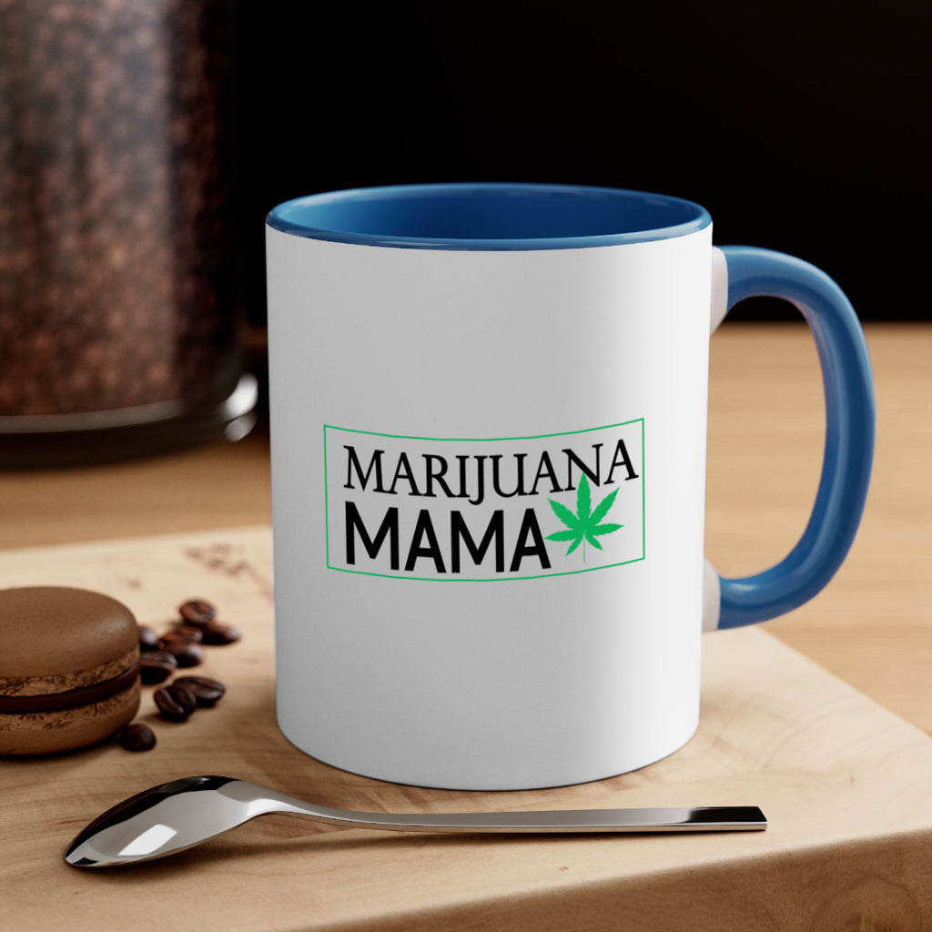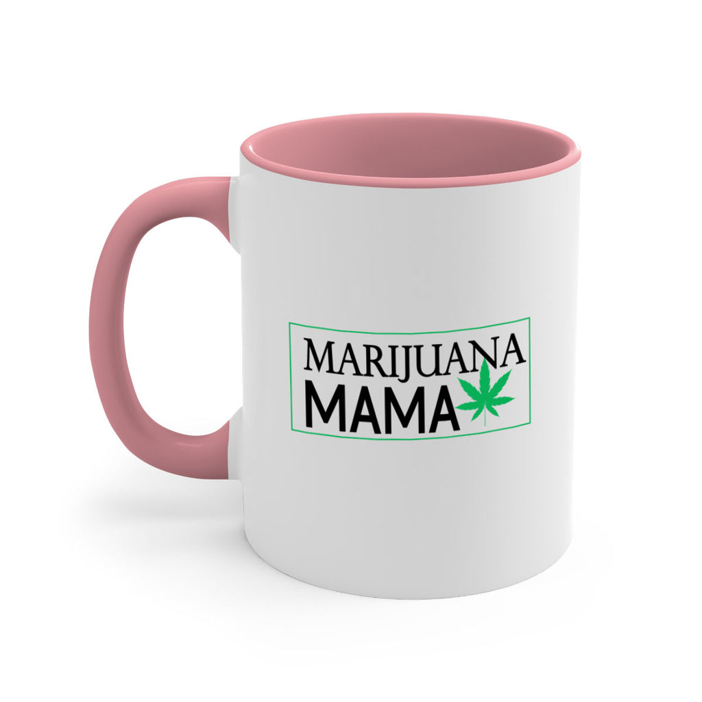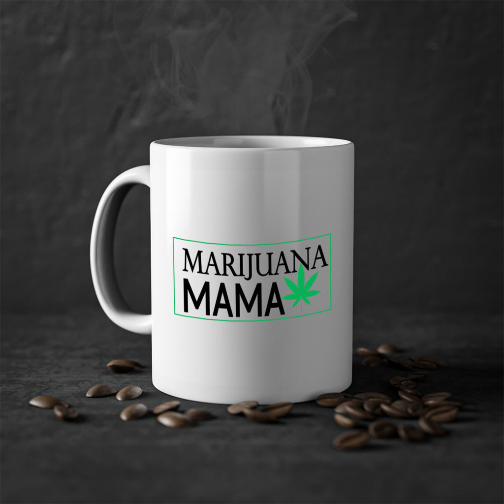 Enjoy the Marijuana Mama 206# Mug . Here to bring big gulps of coffee, Tea or any beverage and style, these two-tone coffee mugs help people around the world start the day just right. Choose between 5 different color options and 2 sizes to best complement the design. Each mug comes with a colored handle, a colored interior, and a classy, glossy finish so that your mugs become an instant favorite.