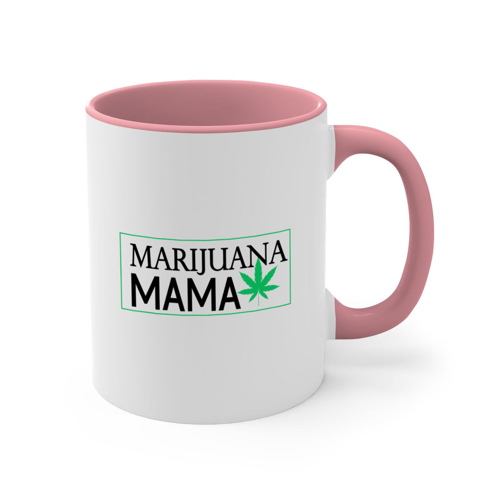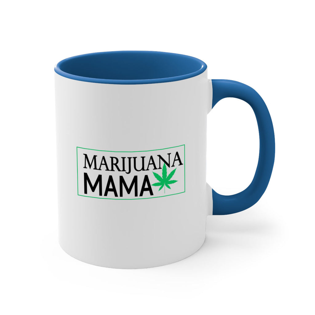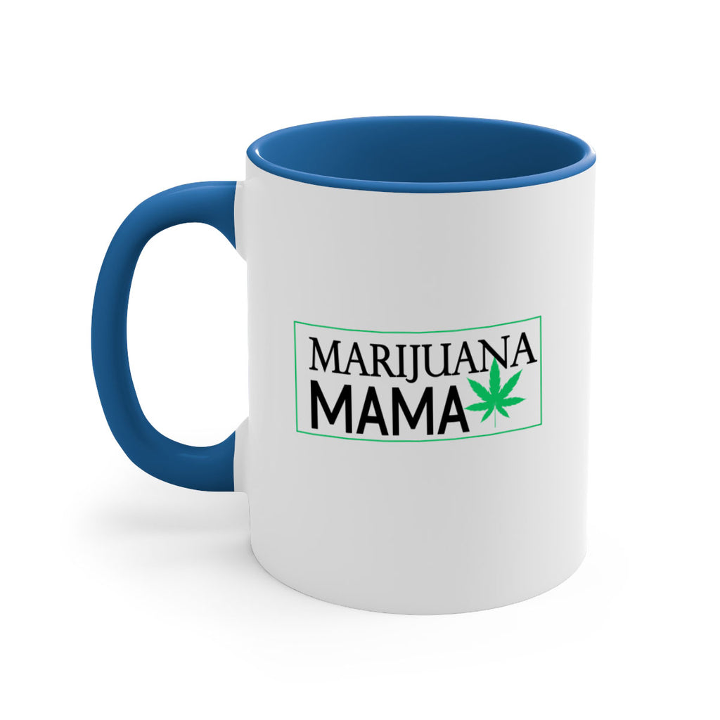 Enjoy the Marijuana Mama 206# Mug . Here to bring big gulps of coffee, Tea or any beverage and style, these two-tone coffee mugs help people around the world start the day just right. Choose between 5 different color options and 2 sizes to best complement the design. Each mug comes with a colored handle, a colored interior, and a classy, glossy finish so that your mugs become an instant favorite.