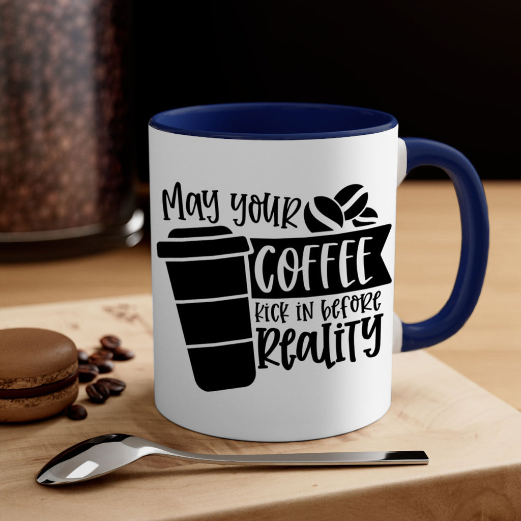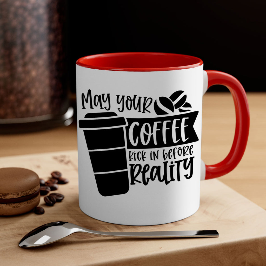 Enjoy the may your coffee kick in before reality 64# Mug . Here to bring big gulps of coffee, Tea or any beverage and style, these two-tone coffee mugs help people around the world start the day just right. Choose between 5 different color options and 2 sizes to best complement the design. Each mug comes with a colored handle, a colored interior, and a classy, glossy finish so that your mugs become an instant favorite.