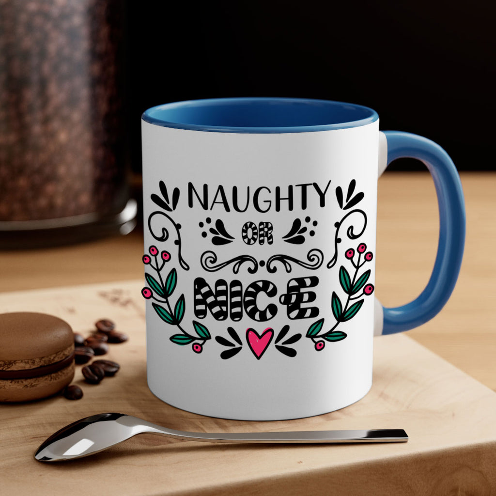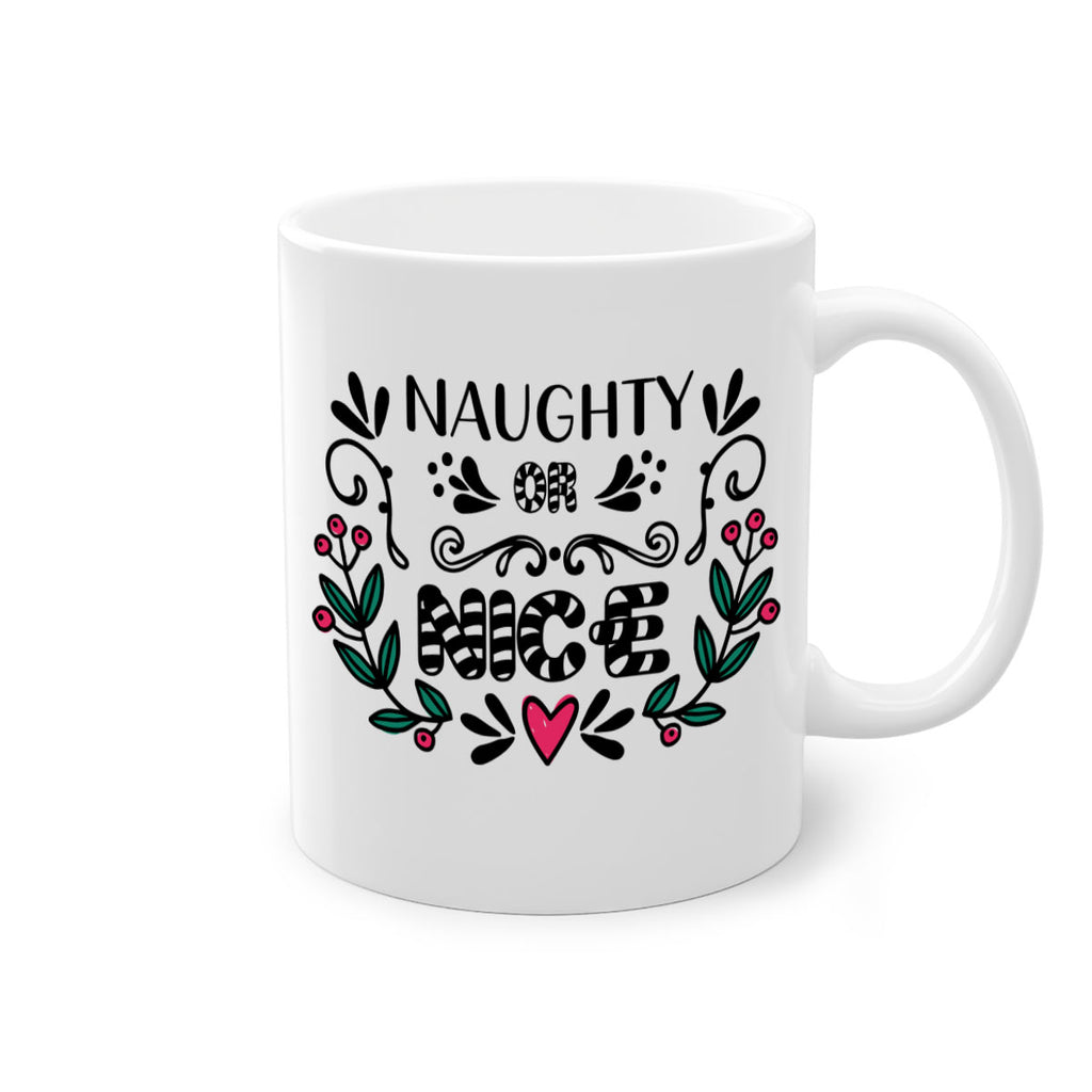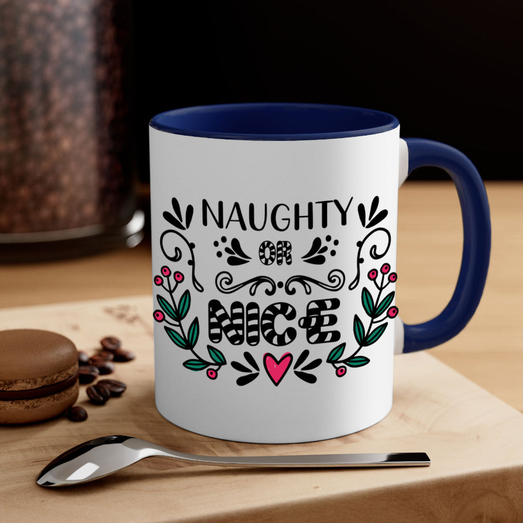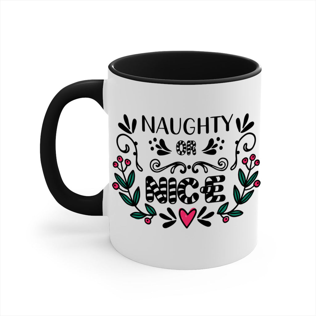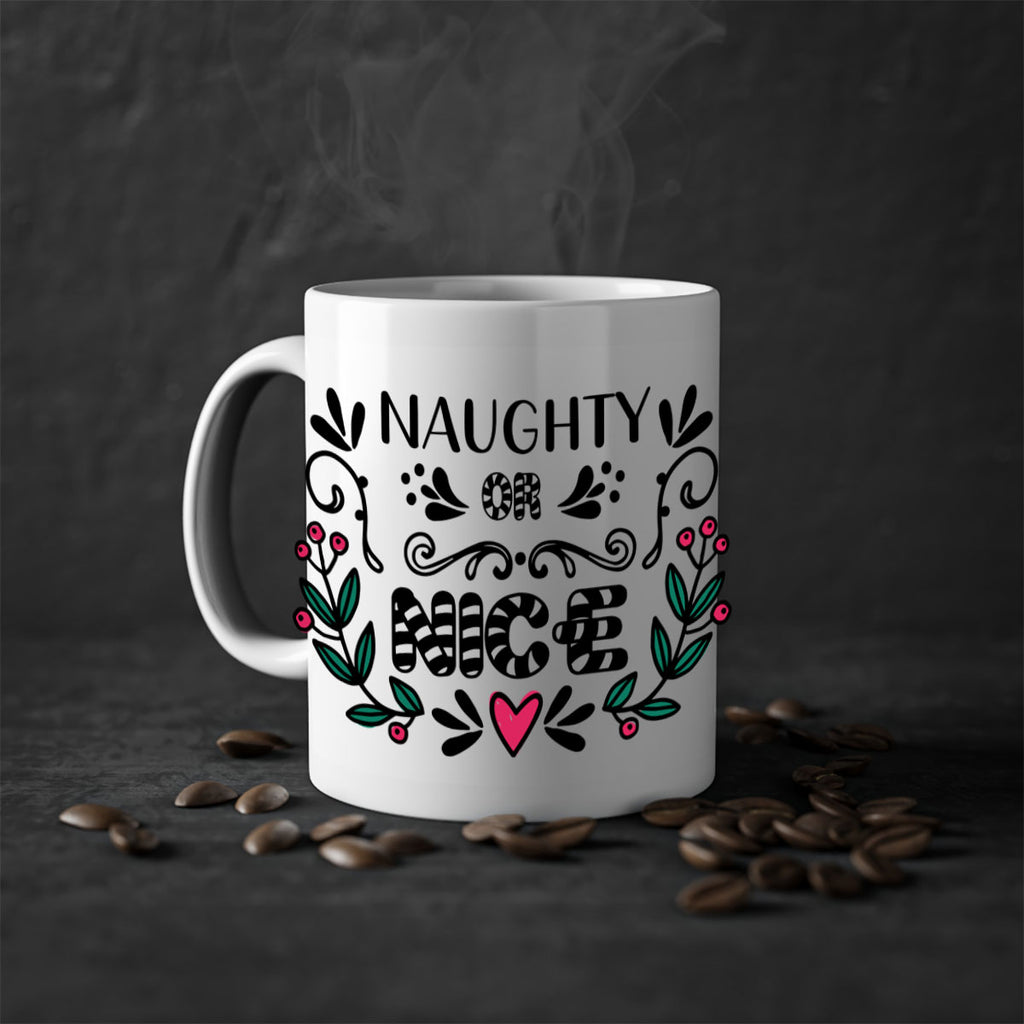 Enjoy the naughty or nice style 535# Mug . Here to bring big gulps of coffee, Tea or any beverage and style, these two-tone coffee mugs help people around the world start the day just right. Choose between 5 different color options and 2 sizes to best complement the design. Each mug comes with a colored handle, a colored interior, and a classy, glossy finish so that your mugs become an instant favorite.