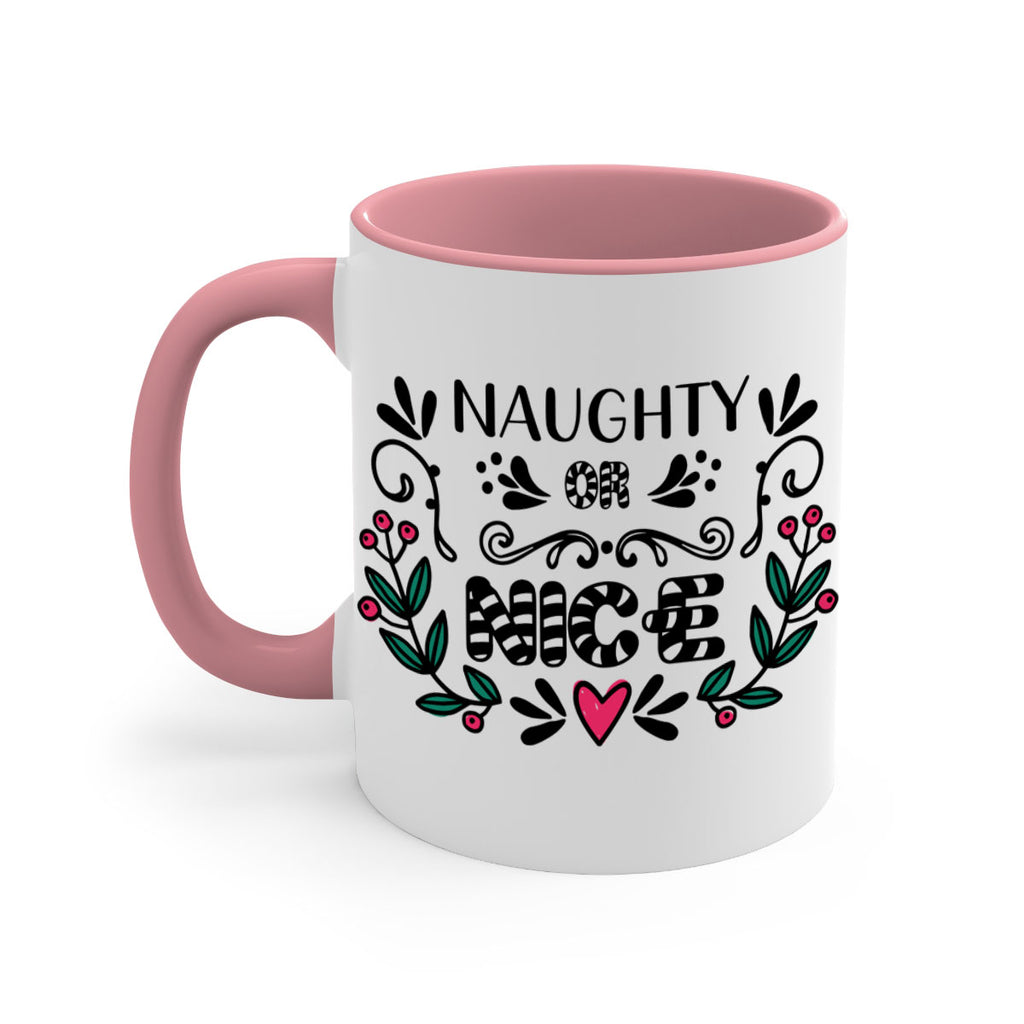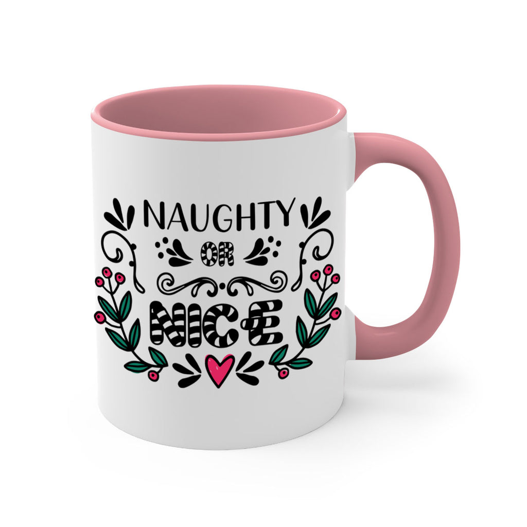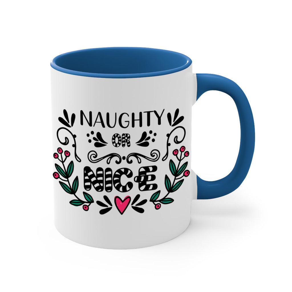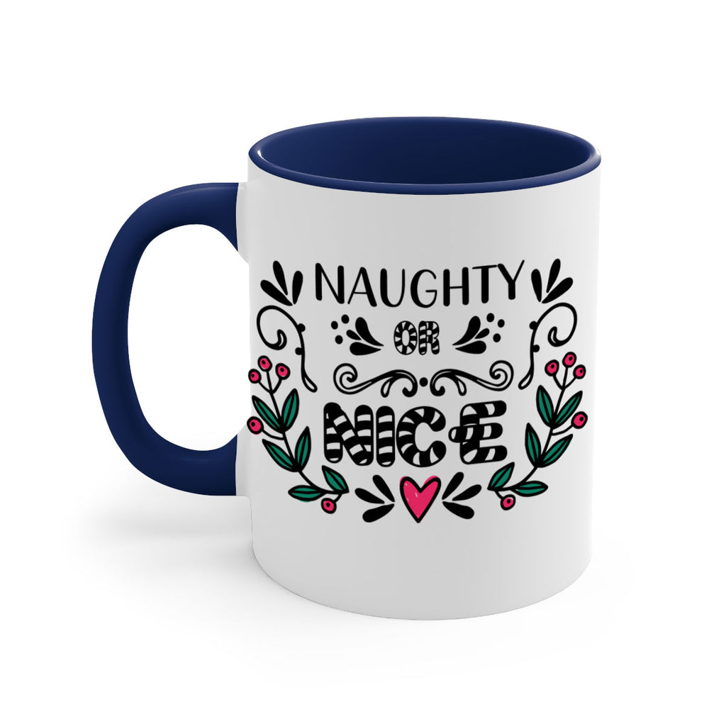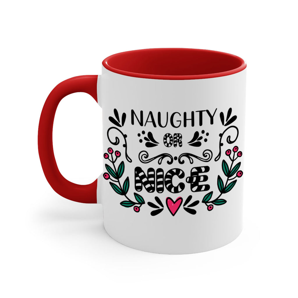 Enjoy the naughty or nice style 535# Mug . Here to bring big gulps of coffee, Tea or any beverage and style, these two-tone coffee mugs help people around the world start the day just right. Choose between 5 different color options and 2 sizes to best complement the design. Each mug comes with a colored handle, a colored interior, and a classy, glossy finish so that your mugs become an instant favorite.