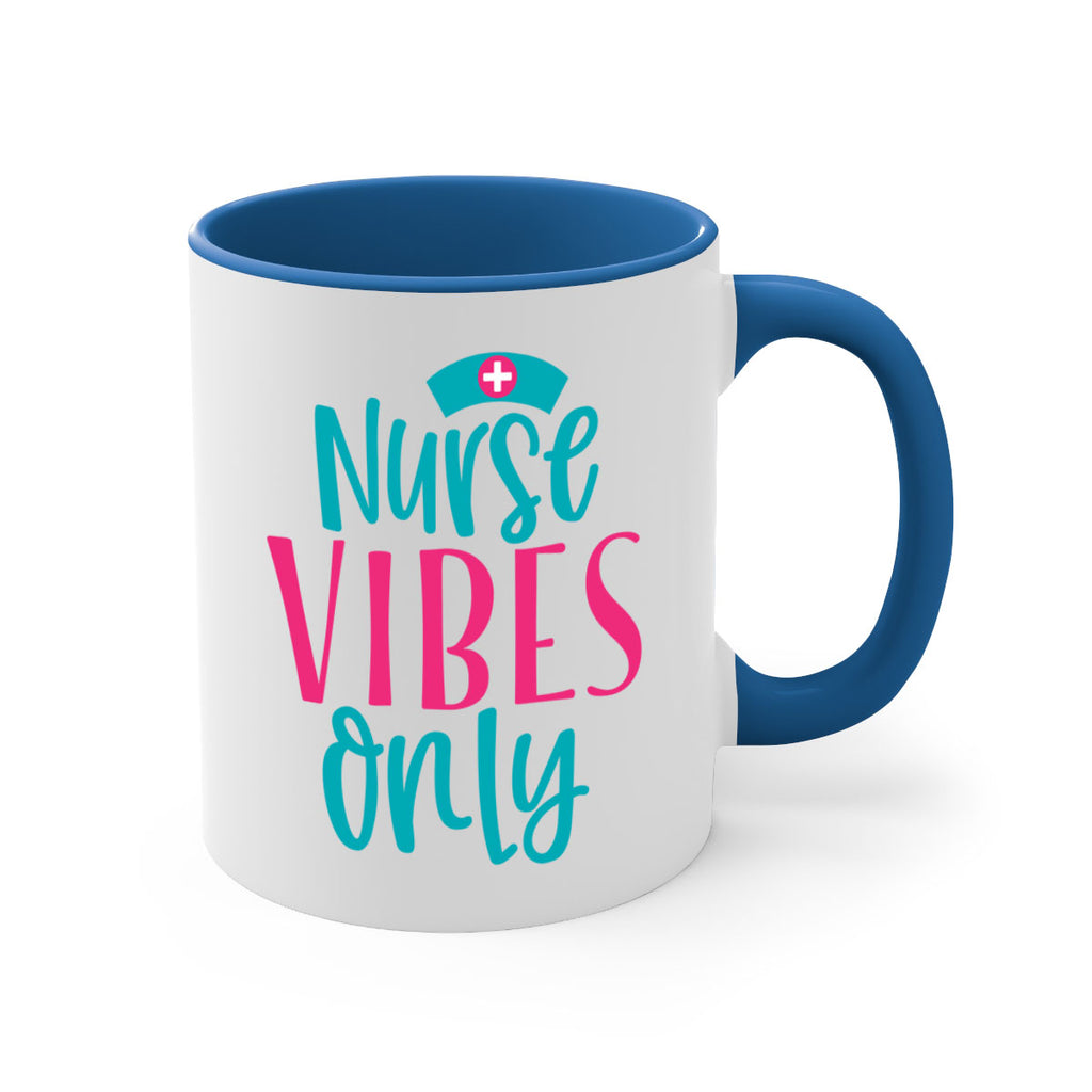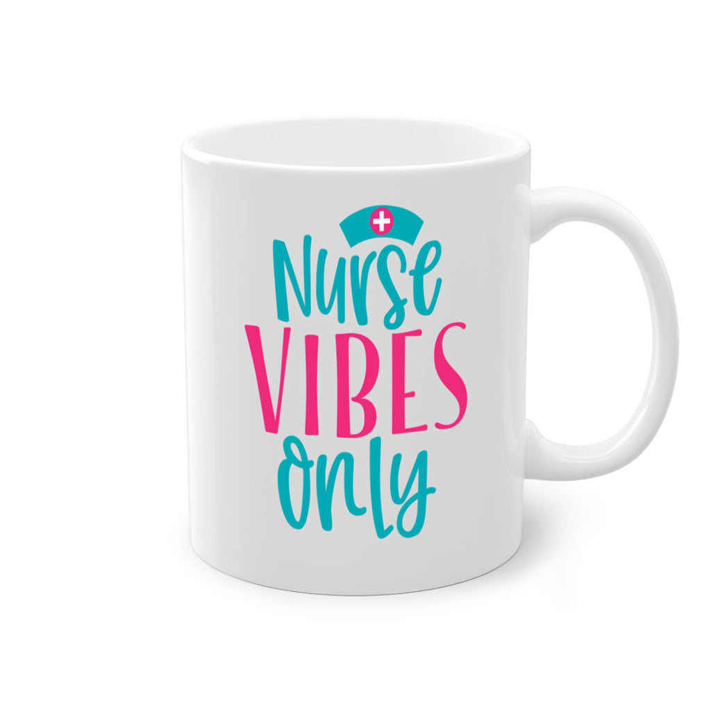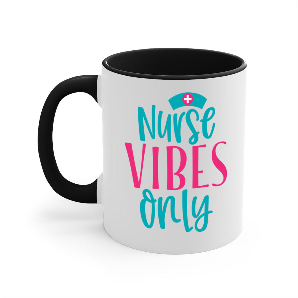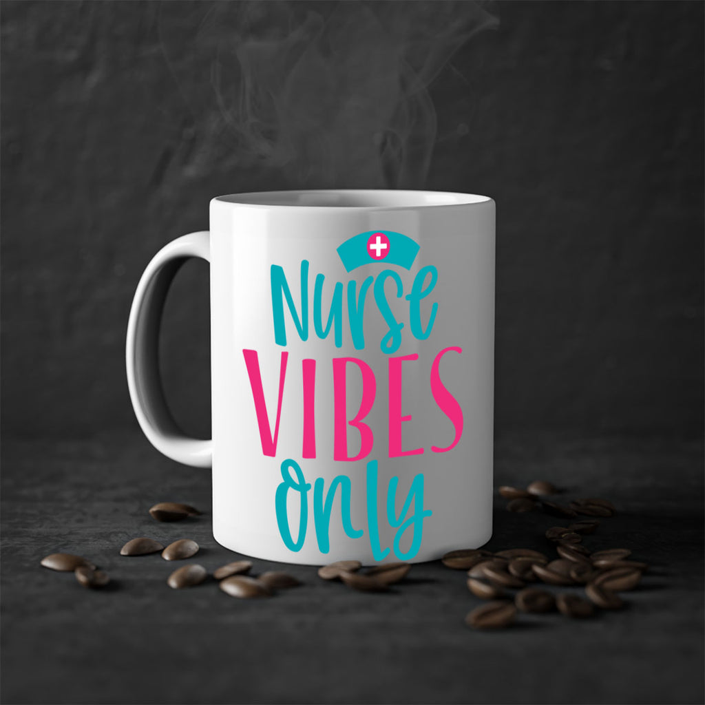 Enjoy the Nurse Vibes Only Style 369# Mug . Here to bring big gulps of coffee, Tea or any beverage and style, these two-tone coffee mugs help people around the world start the day just right. Choose between 5 different color options and 2 sizes to best complement the design. Each mug comes with a colored handle, a colored interior, and a classy, glossy finish so that your mugs become an instant favorite.