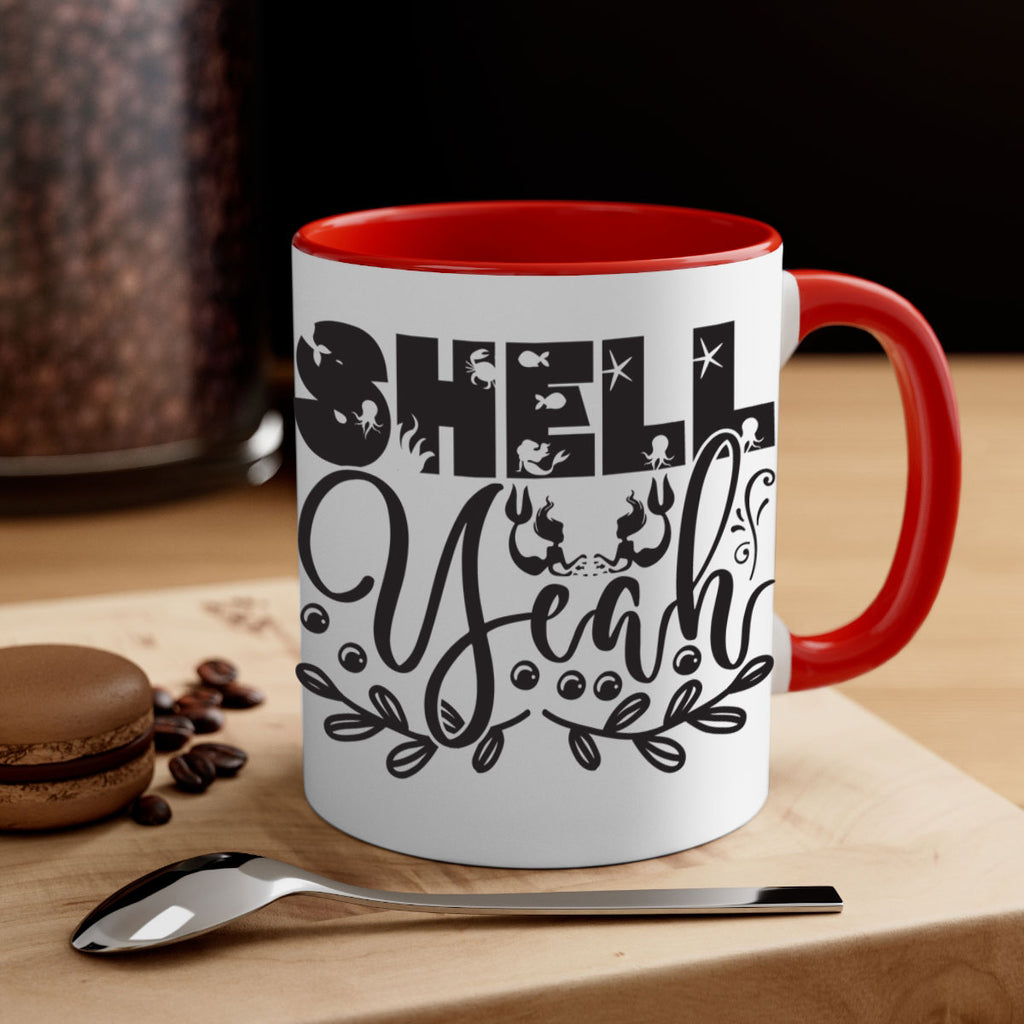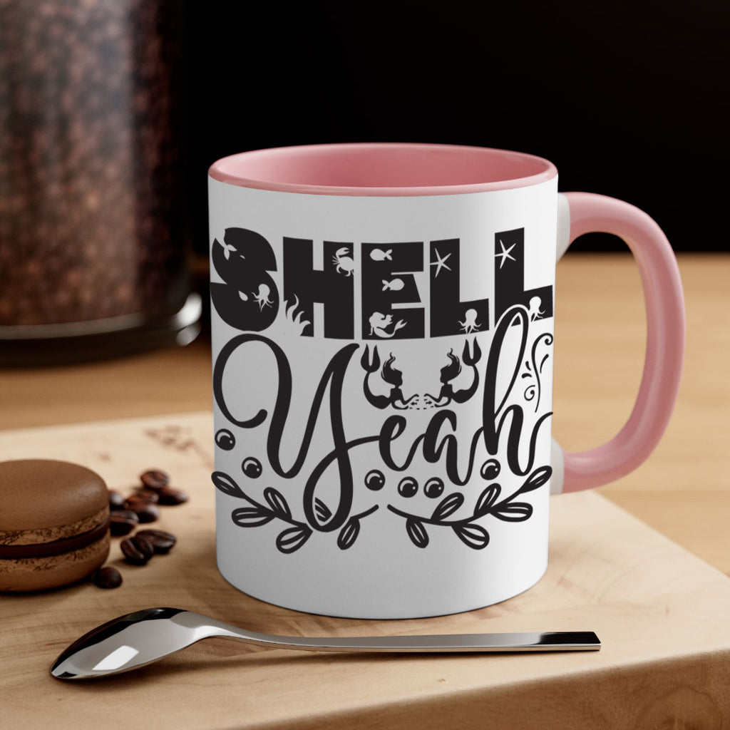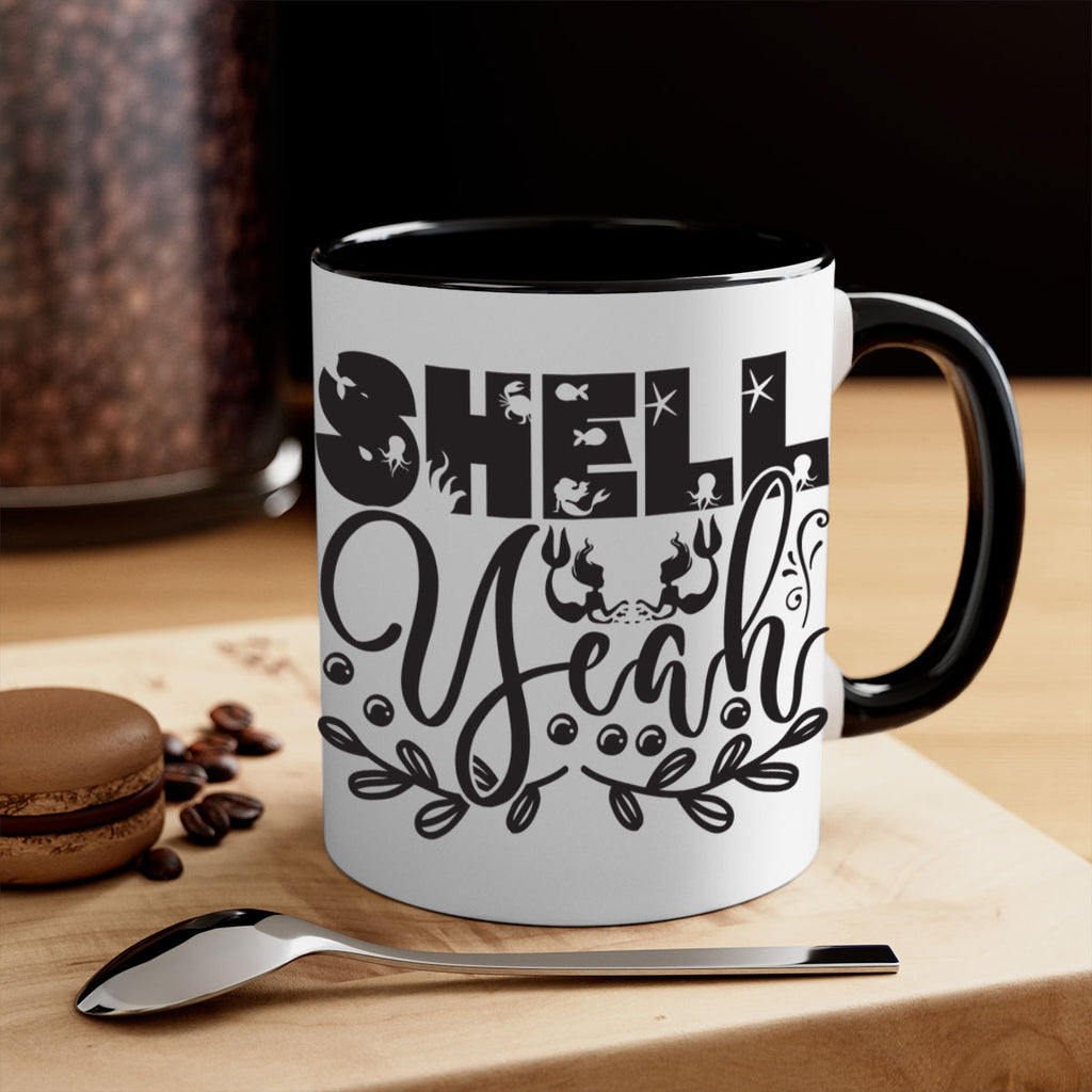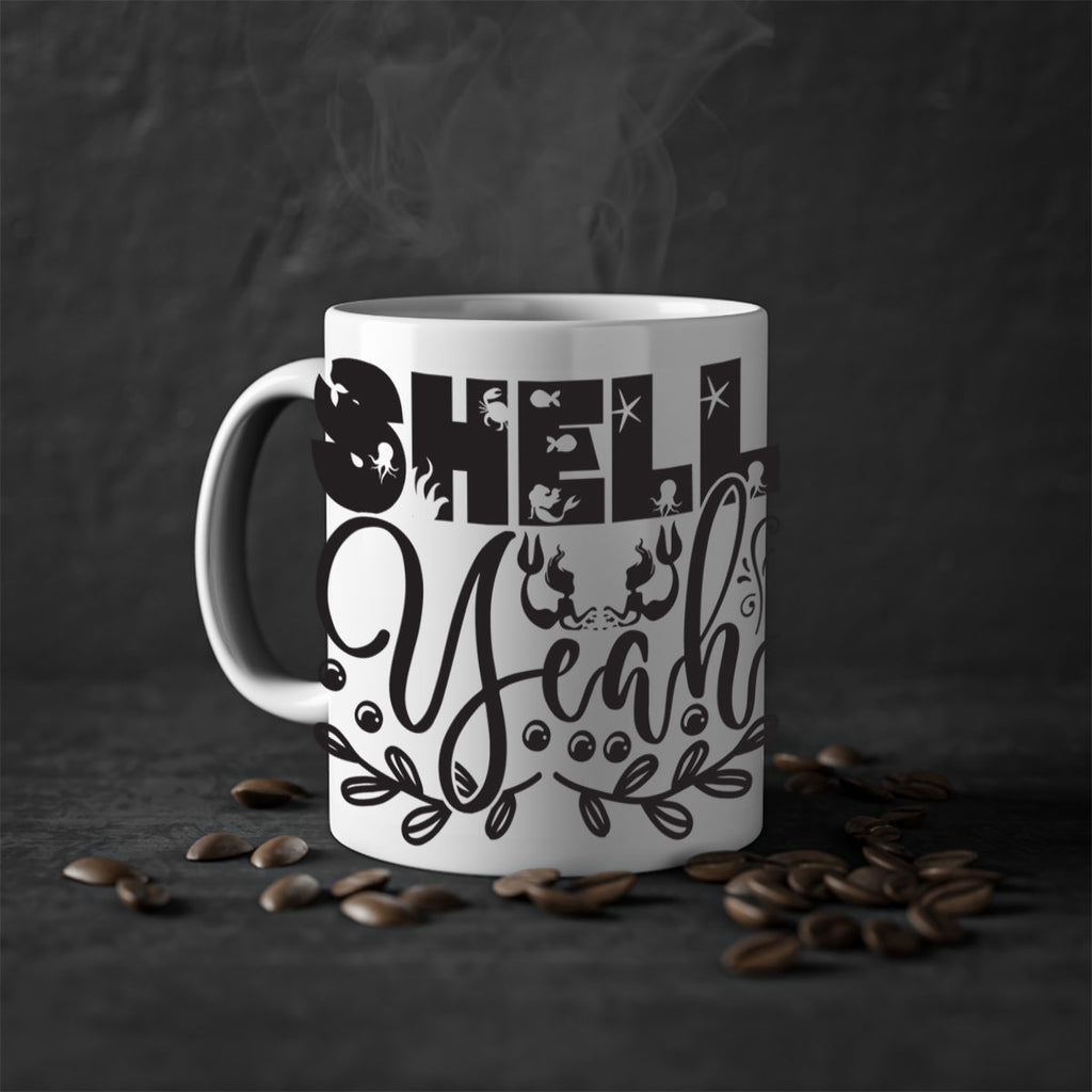 Enjoy the Shell yeah 595# Mug . Here to bring big gulps of coffee, Tea or any beverage and style, these two-tone coffee mugs help people around the world start the day just right. Choose between 5 different color options and 2 sizes to best complement the design. Each mug comes with a colored handle, a colored interior, and a classy, glossy finish so that your mugs become an instant favorite.