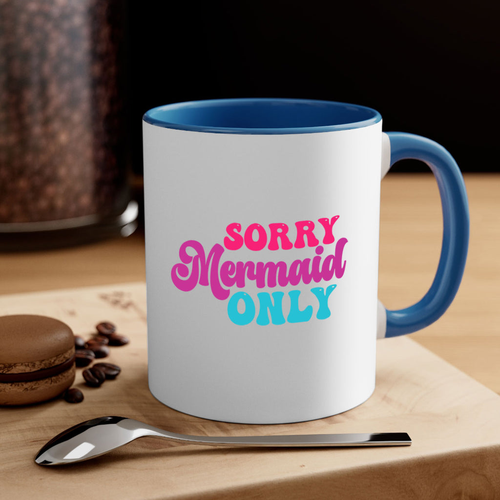 Enjoy the Sorry Mermaid Only 601# Mug . Here to bring big gulps of coffee, Tea or any beverage and style, these two-tone coffee mugs help people around the world start the day just right. Choose between 5 different color options and 2 sizes to best complement the design. Each mug comes with a colored handle, a colored interior, and a classy, glossy finish so that your mugs become an instant favorite.