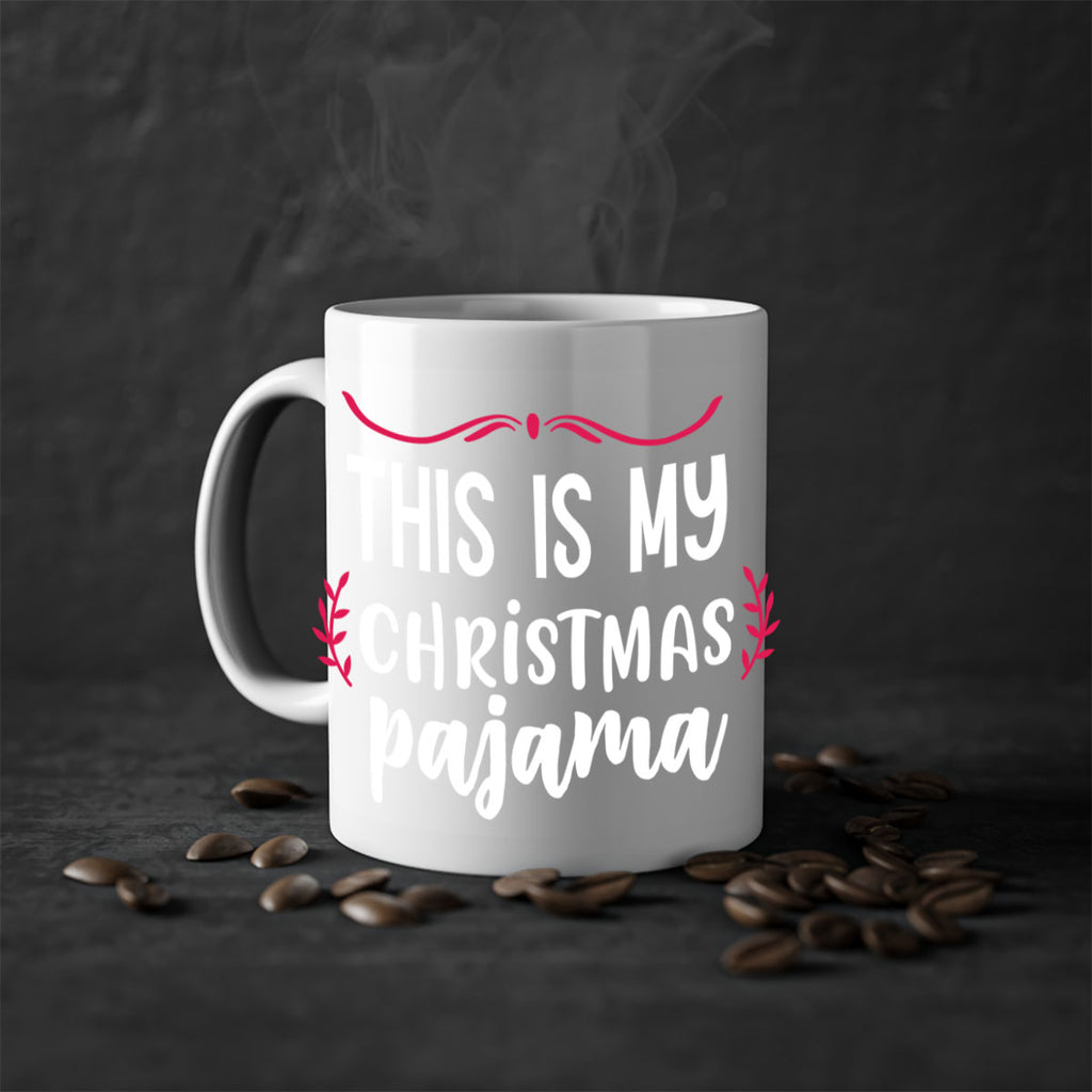 Enjoy the this is my christmas pajama style 1211# Mug . Here to bring big gulps of coffee, Tea or any beverage and style, these two-tone coffee mugs help people around the world start the day just right. Choose between 5 different color options and 2 sizes to best complement the design. Each mug comes with a colored handle, a colored interior, and a classy, glossy finish so that your mugs become an instant favorite.