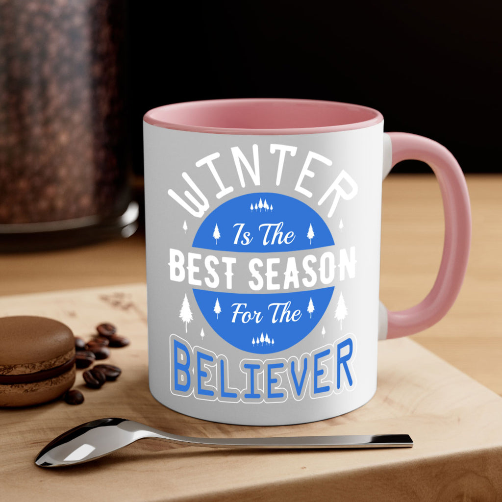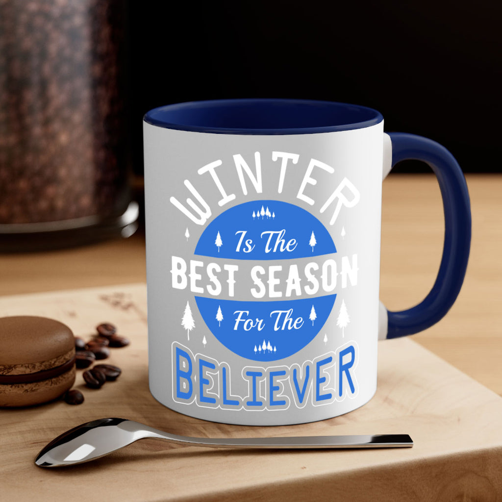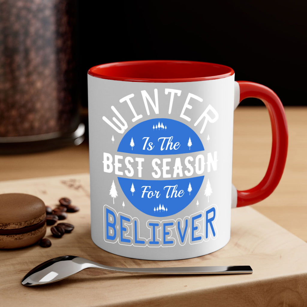 Enjoy the Winter 541# Mug . Here to bring big gulps of coffee, Tea or any beverage and style, these two-tone coffee mugs help people around the world start the day just right. Choose between 5 different color options and 2 sizes to best complement the design. Each mug comes with a colored handle, a colored interior, and a classy, glossy finish so that your mugs become an instant favorite.