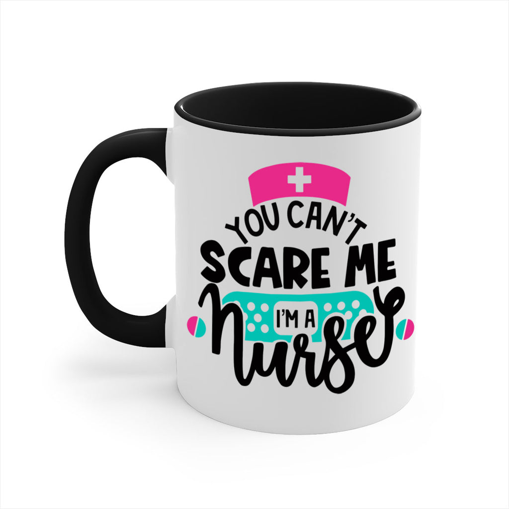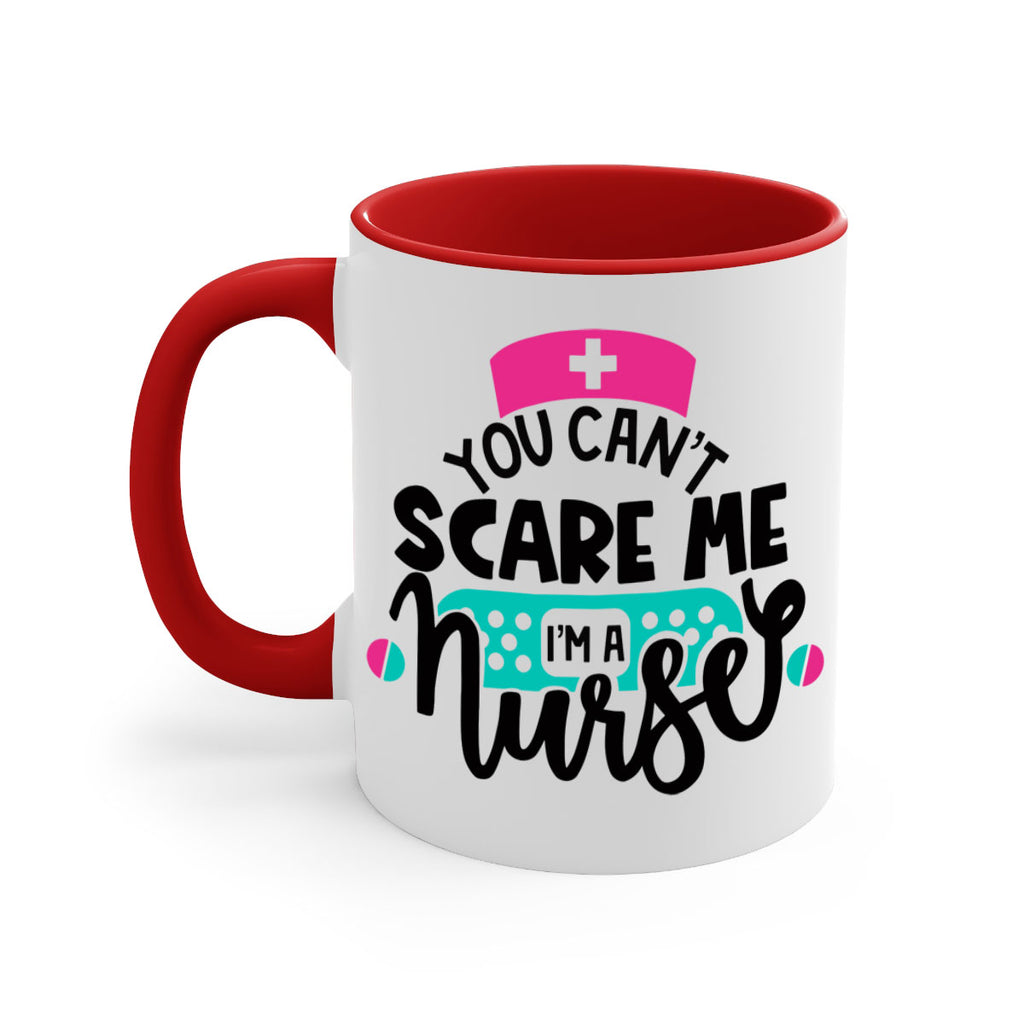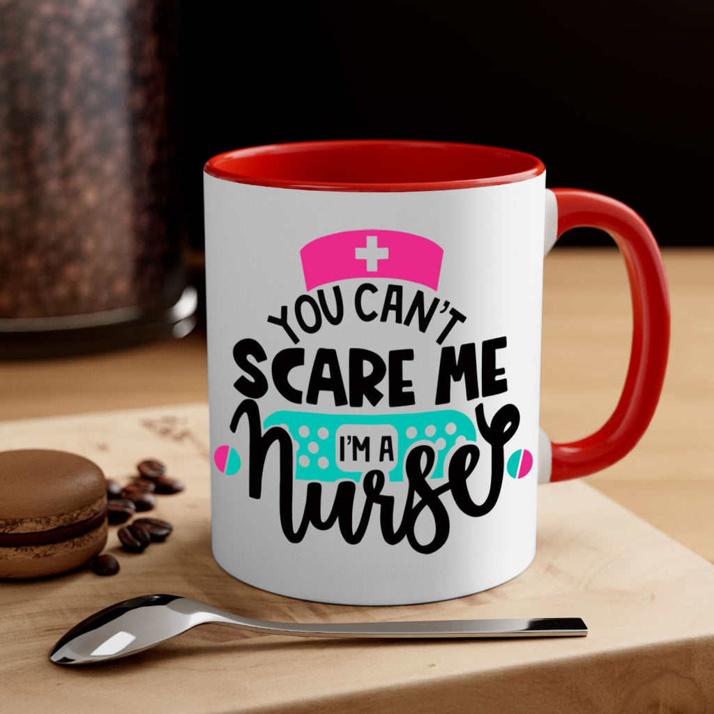 Enjoy the You Cant Scare Me Im A Nurse Style Style 2# Mug . Here to bring big gulps of coffee, Tea or any beverage and style, these two-tone coffee mugs help people around the world start the day just right. Choose between 5 different color options and 2 sizes to best complement the design. Each mug comes with a colored handle, a colored interior, and a classy, glossy finish so that your mugs become an instant favorite.